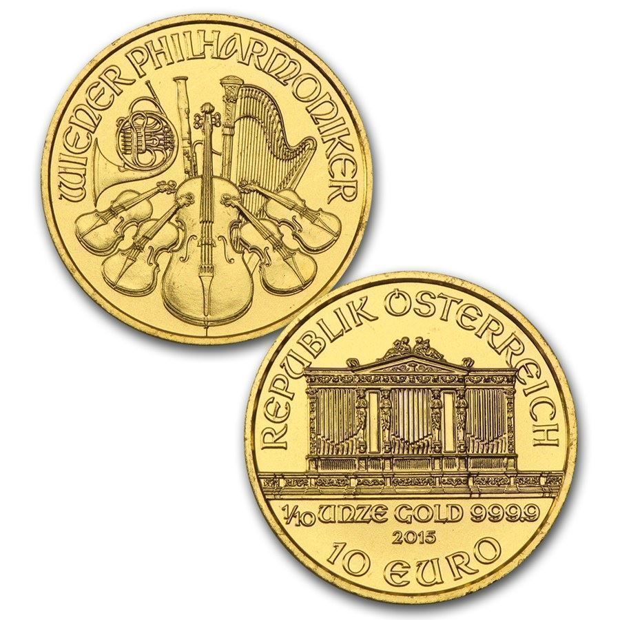 * 1/10 oz Gold Austrian Philharmonic - Minted for the first time in 1991 and .9999 fine.
