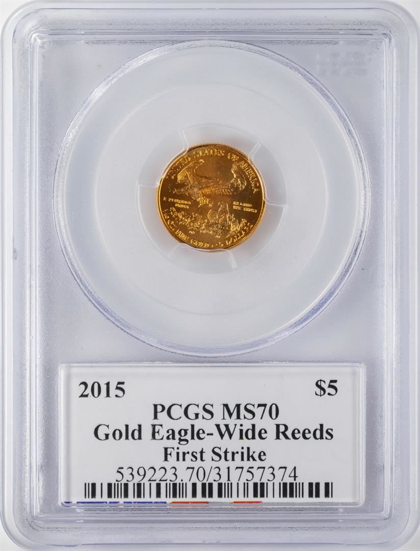 2015 $5 Wide Reeds American Gold Eagle Coin PCGS MS70 Moy Signature First Strike
