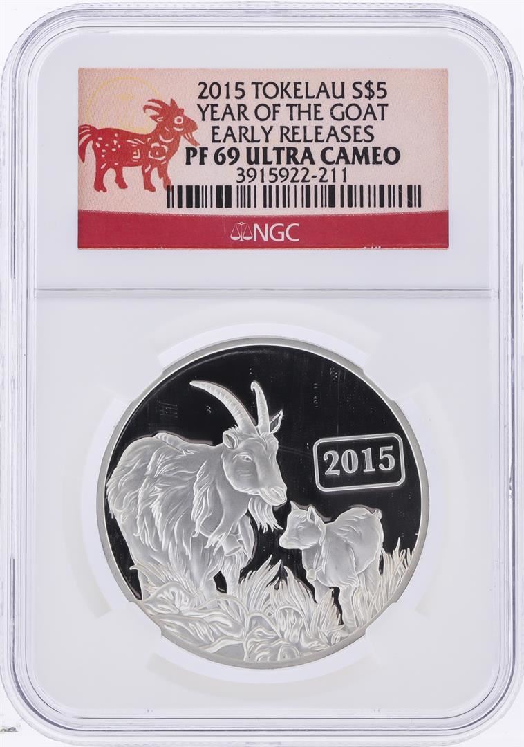 One 2015 $5 Year of the Goat Silver Coin NGC PF69 Ultra Cameo. NGC Certified.