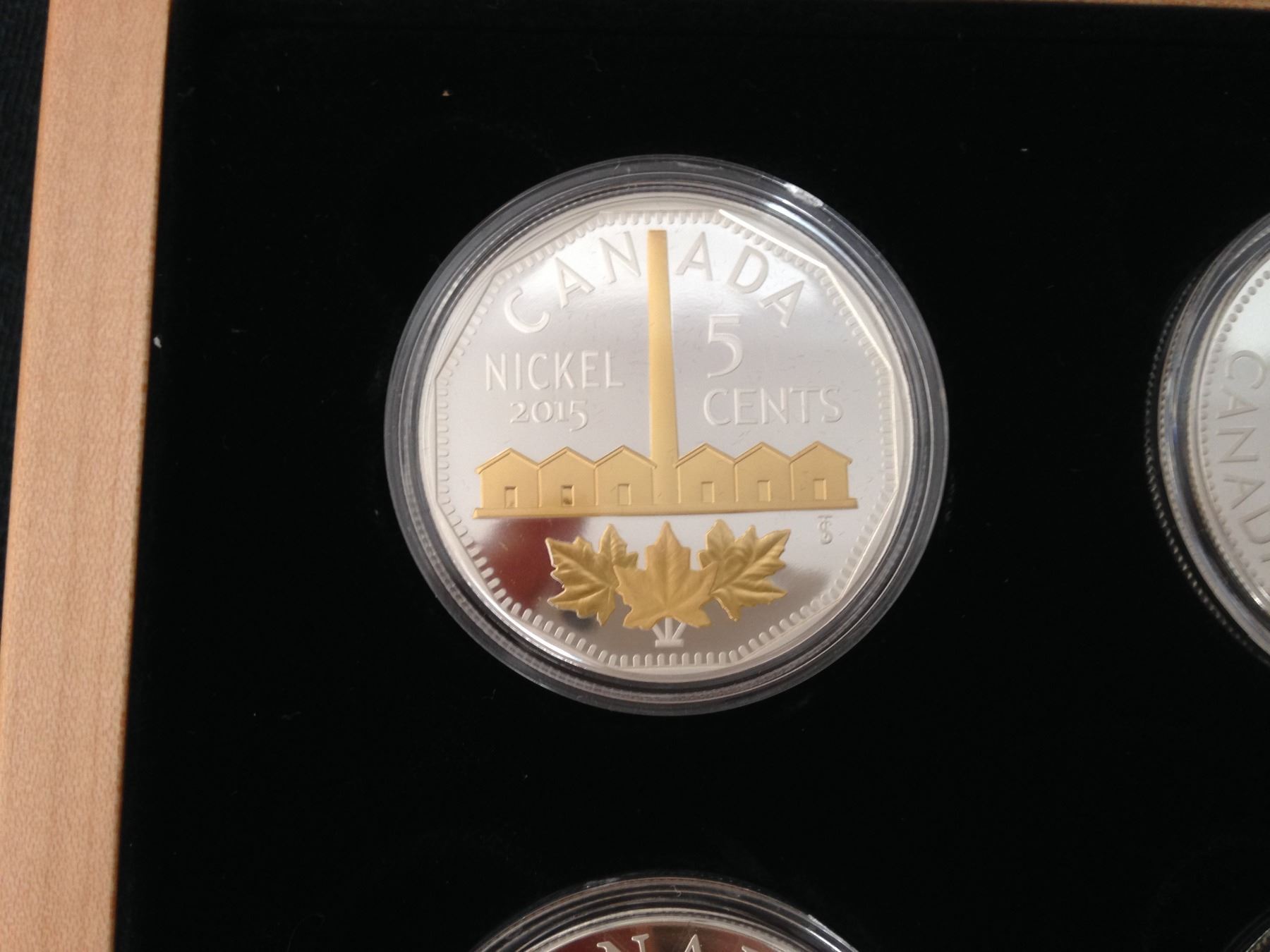 2015 5 cent Fine Silver Coin Set - Legacy ot the Canadian Nickel Collector Set (Two Maple Leaves, The centennial 5 cent coin, The Cross Maple Boughs, The identification, The beaver, the victory)