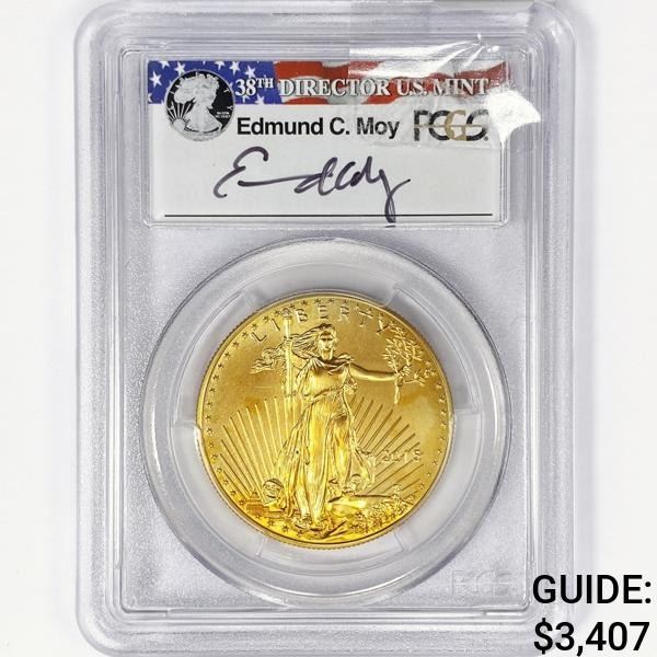 2015 $50 1oz AGE Moy Signed PCGS MS70 1st Strike