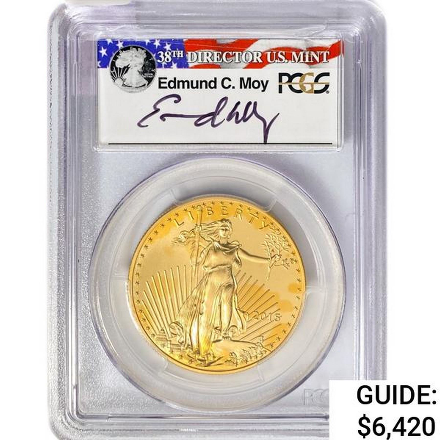 2015 $50 1oz Moy Signed PCGS MS70 1st Strike