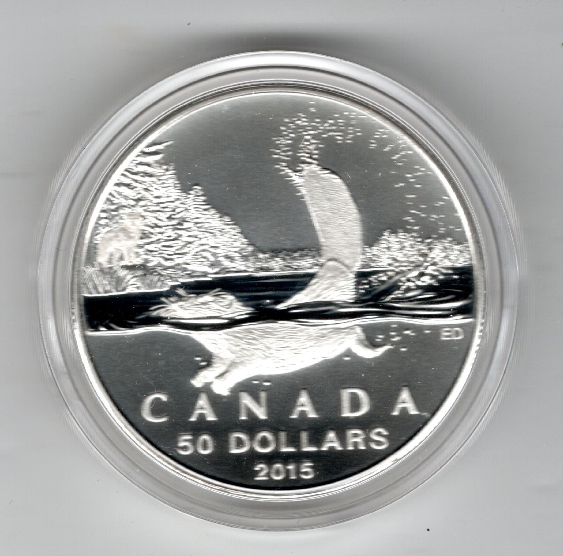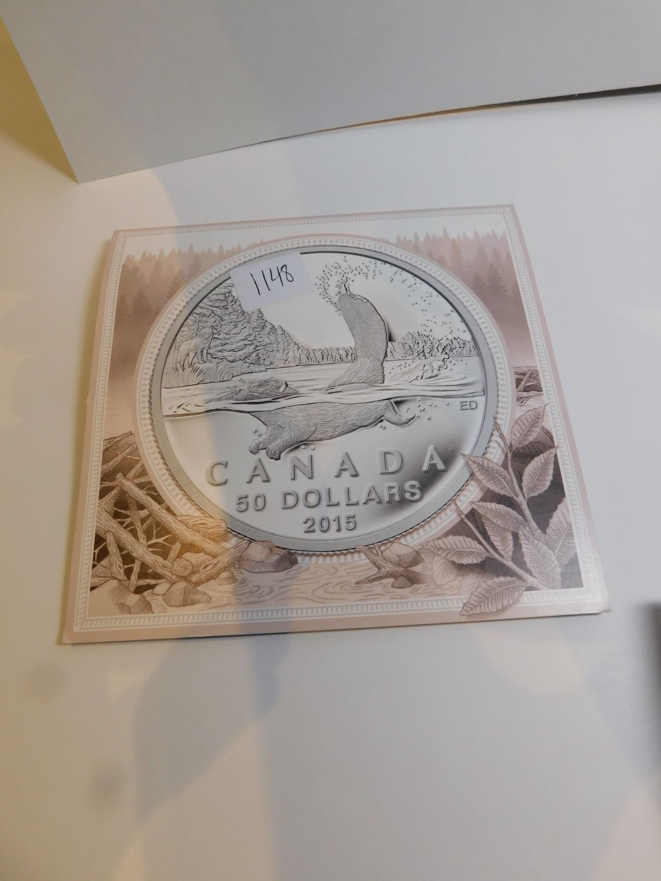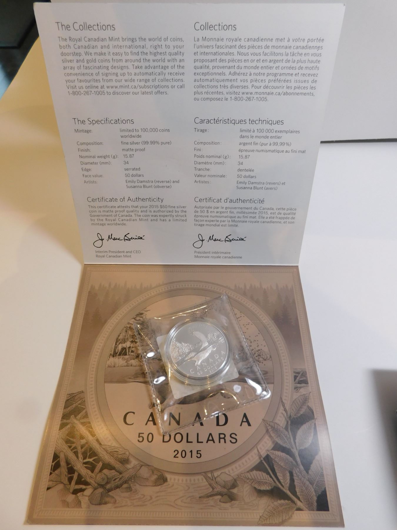 2015, 50 FOR 50, HALF OUNCE .9999 SILVER COIN, BEAVER, $50 FACE, RCM