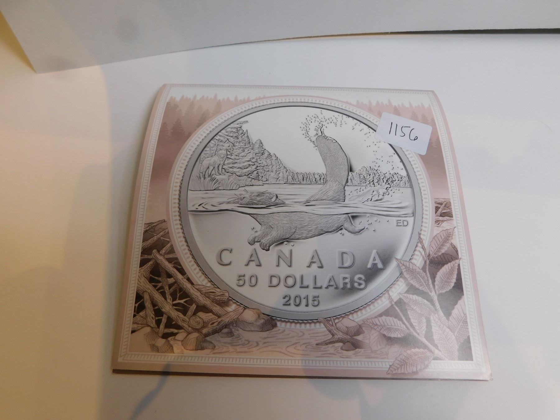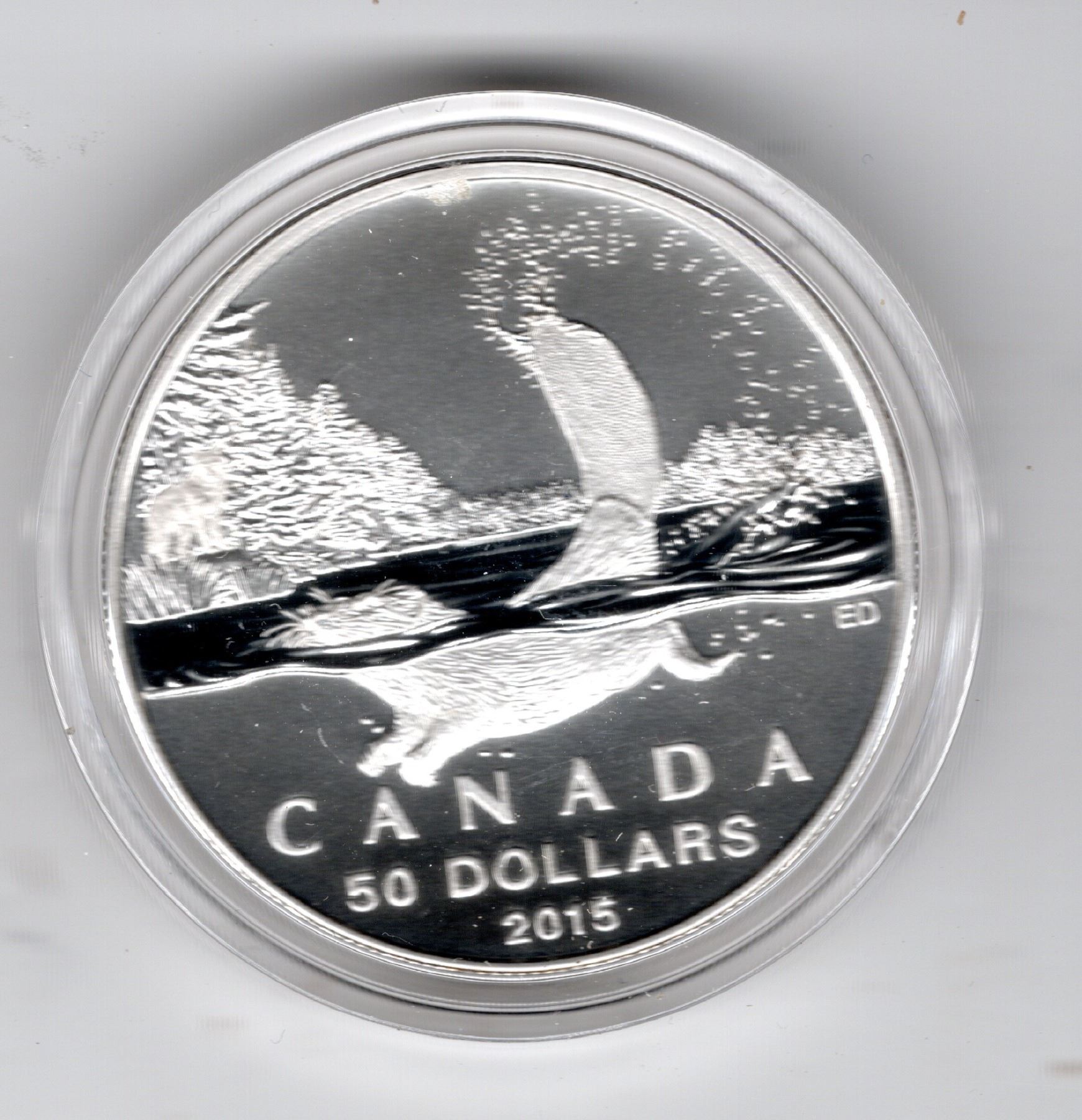 2015, 50 FOR 50, HALF OUNCE .9999 SILVER COIN, BEAVER, $50 FACE, RCM