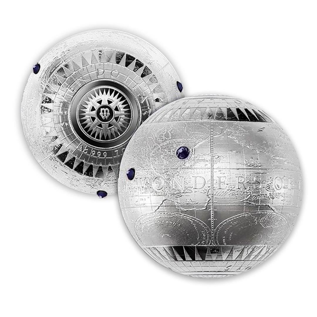 "Seven New Wonders of the World" is the first spherical coin minted by Mint of Poland! Based on the beautiful hand-drawn XVII-century map created by the eminent Dutch cartographer Willem Janszoon Blaeu, this ravishing masterpiece of monetary art combines past and present in its extraordinary design and shape - the Seven New Wonders of the World are marked on the historical map with elegant crystals. The Mint of Poland has taken the next step towards conquering the third dimension of the coin universe. In order to create the spherical coin "Seven New Wonders of the World", our minters, well known for their exquisite craftsmanship implemented the most innovative solutions into the technological process. Thanks to a specially created 6-element die they succeeded not only in creating the ideally spherical shape of the coin, but also in adorning it with intricate relief images.