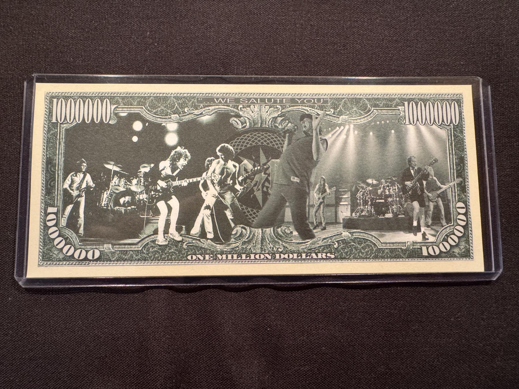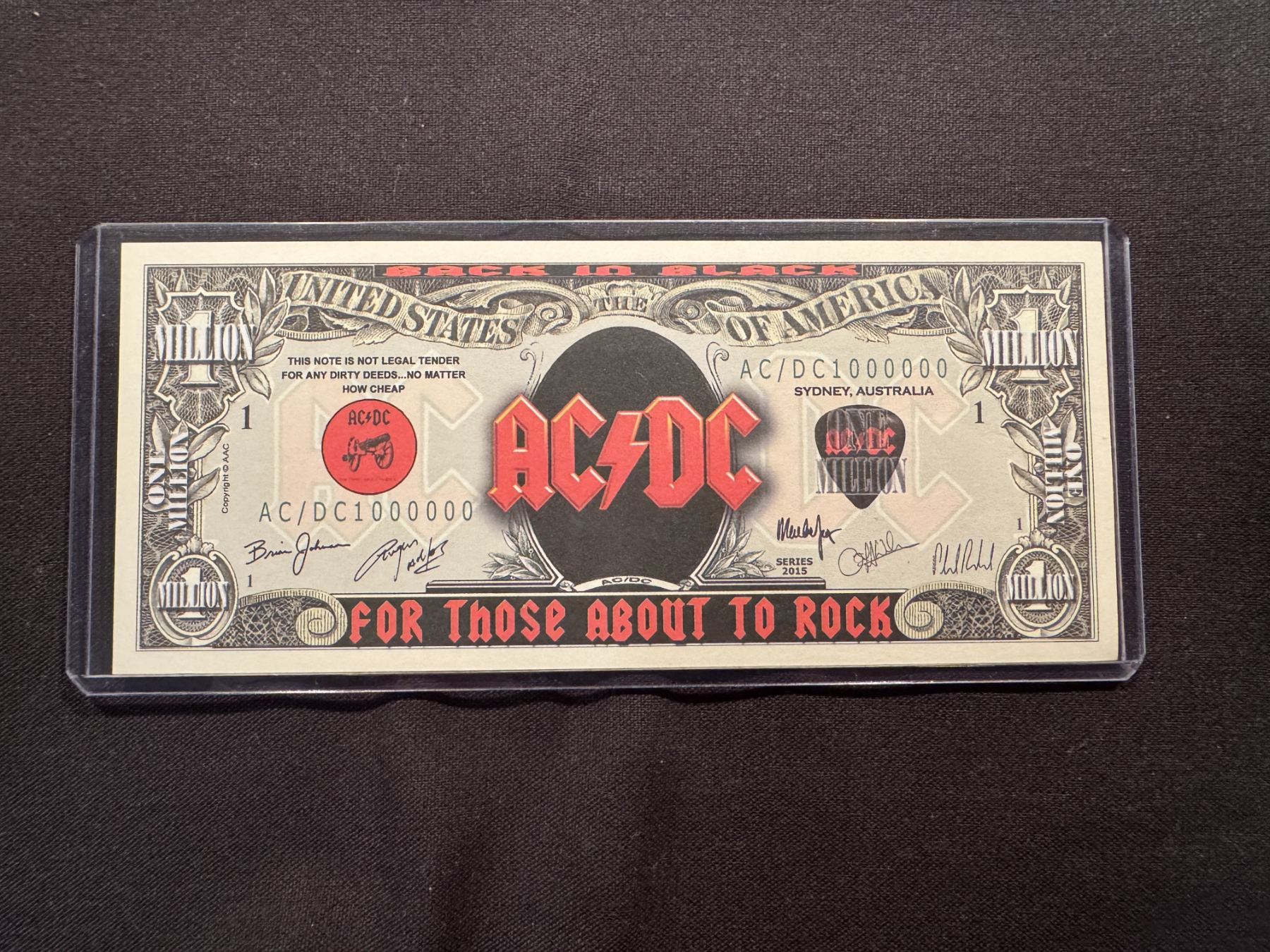 2015 AC/DC One Million Dollar Bill In Protective Holder - Mint Condition