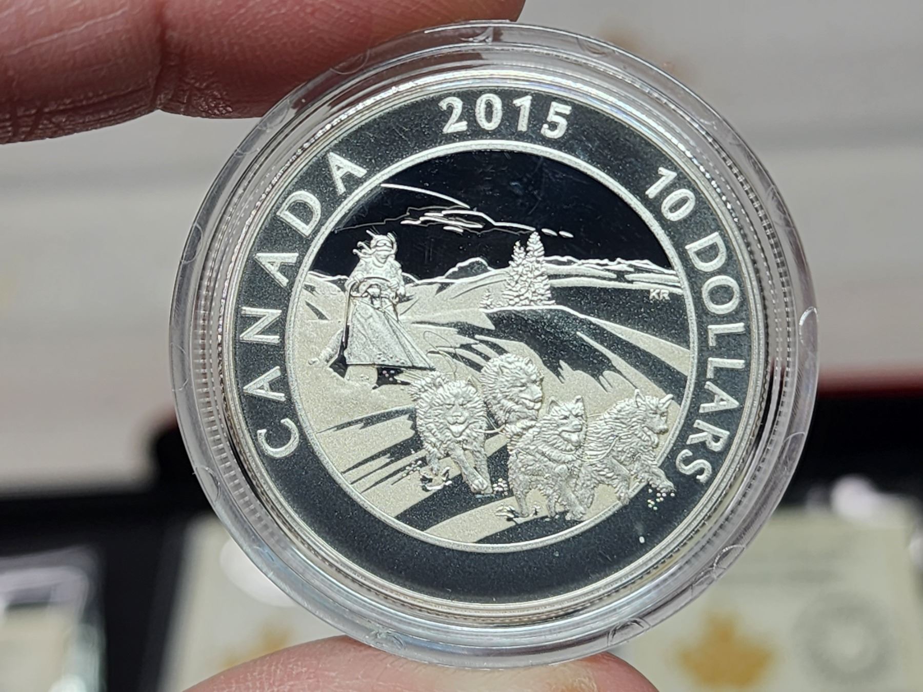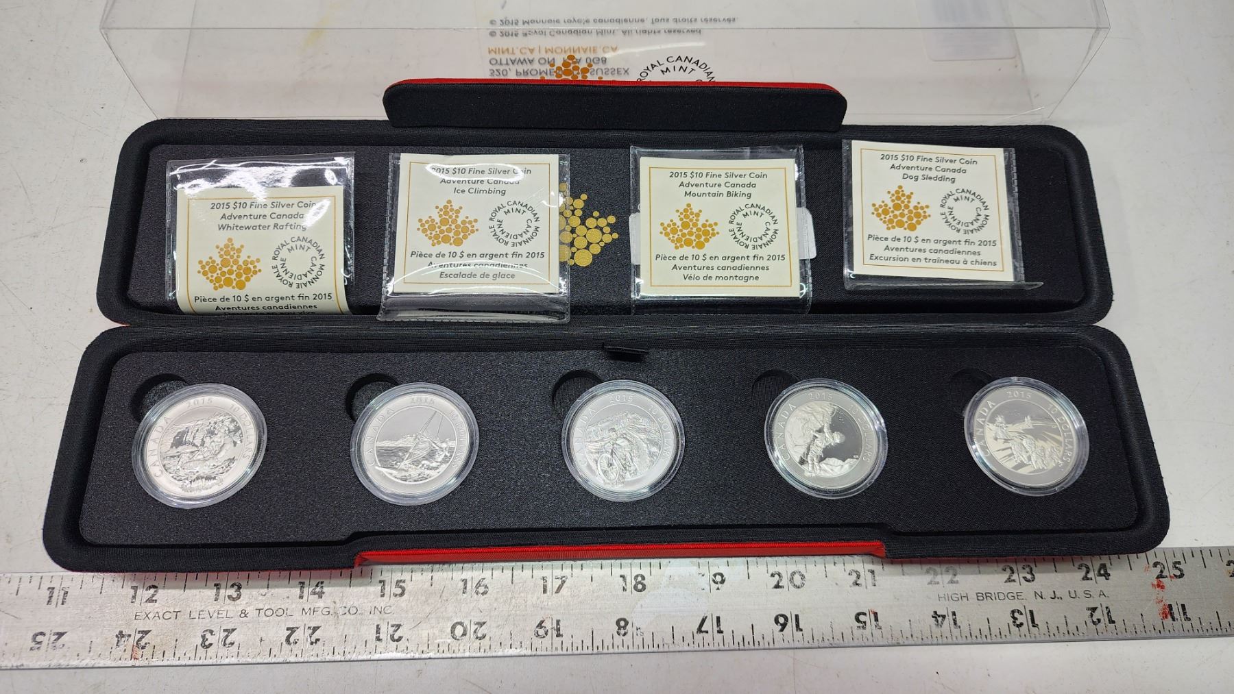 2015 "Adventure Canada" Canadian 5pc 10 dollar, fine silver coin set - in embossed red carrying case