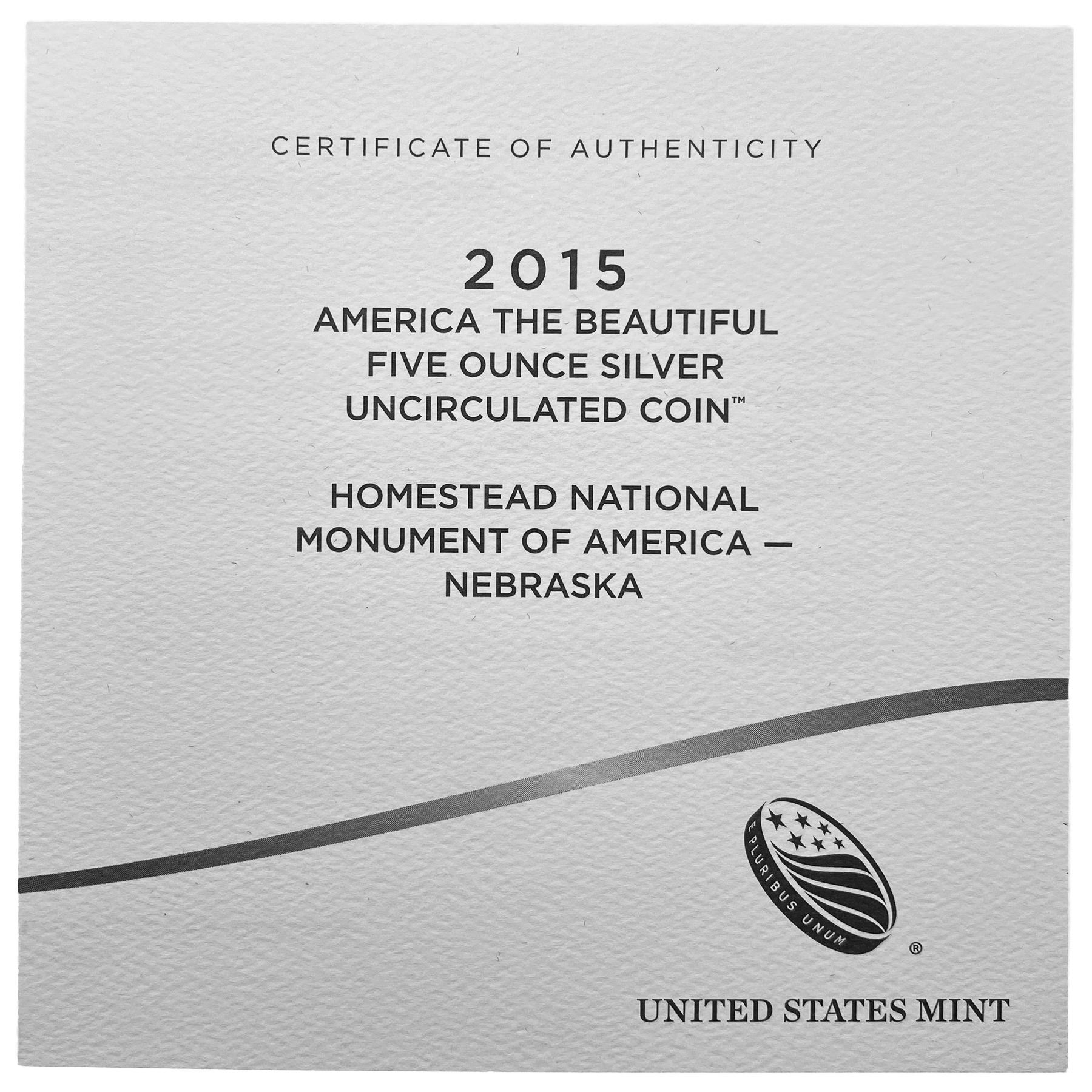2015 American The Beautiful Nebraska 5oz Silver UNC