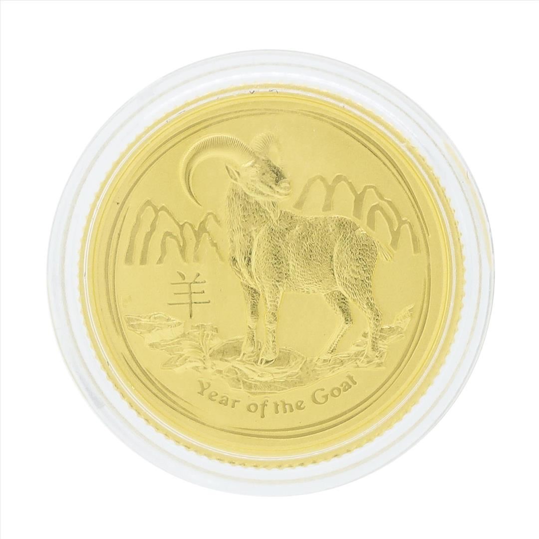 One 2015 Australia 1/10 oz Lunar Year of the Goat Gold Coin.