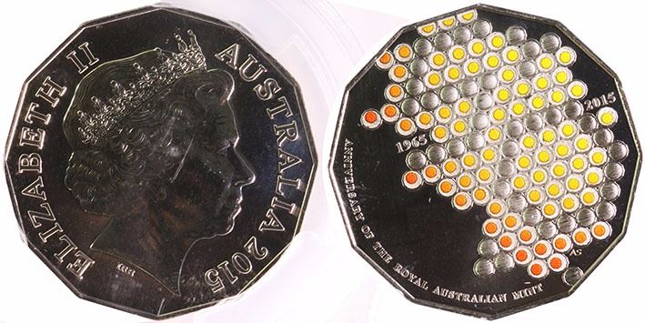 2015 Australian "RAM 50th Anniversary Colorized" Fifty Cent - PCGS MS 67