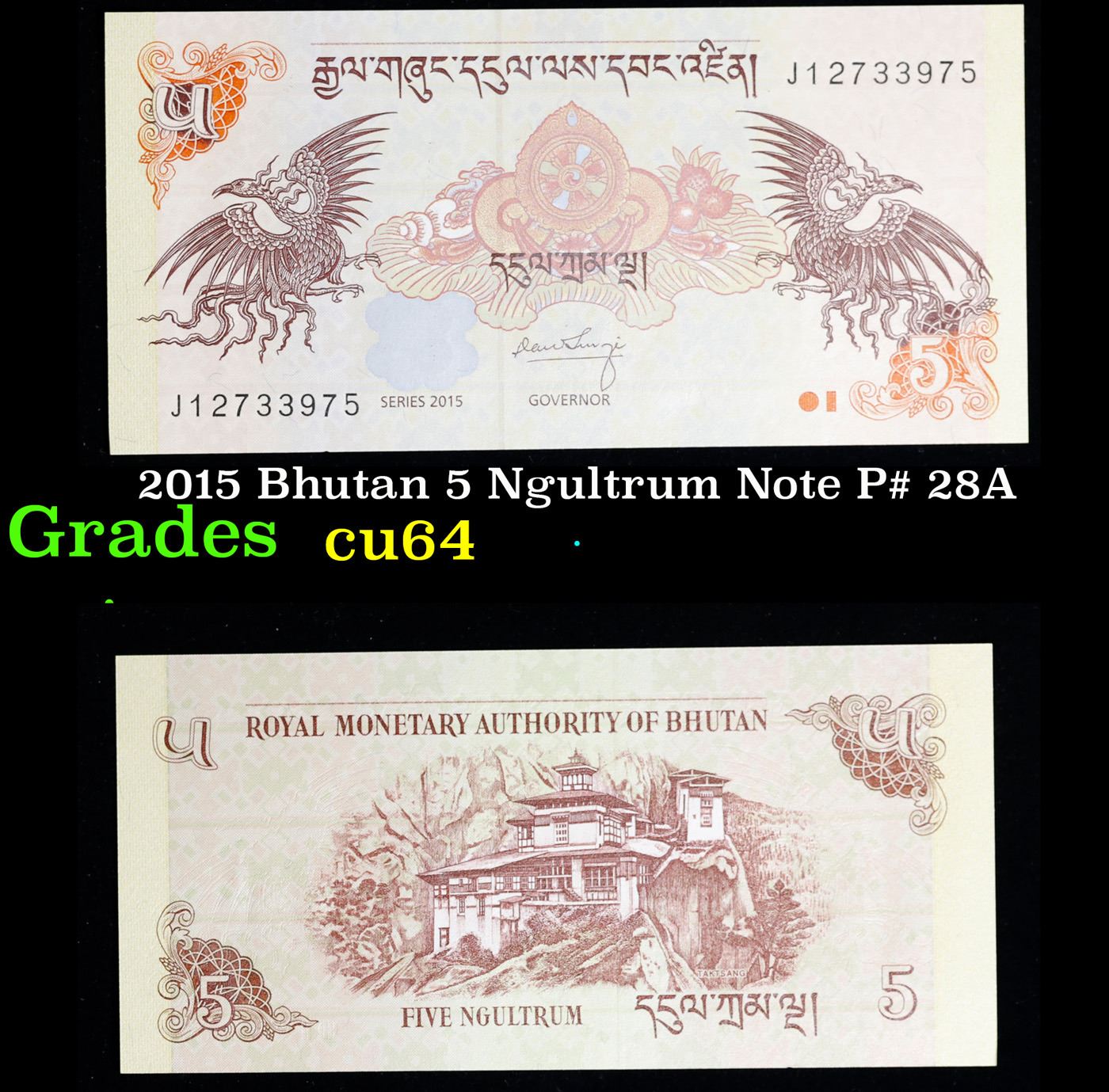 2015 Bhutan 5 Ngultrum Note P# 28A Grades Choice CU.