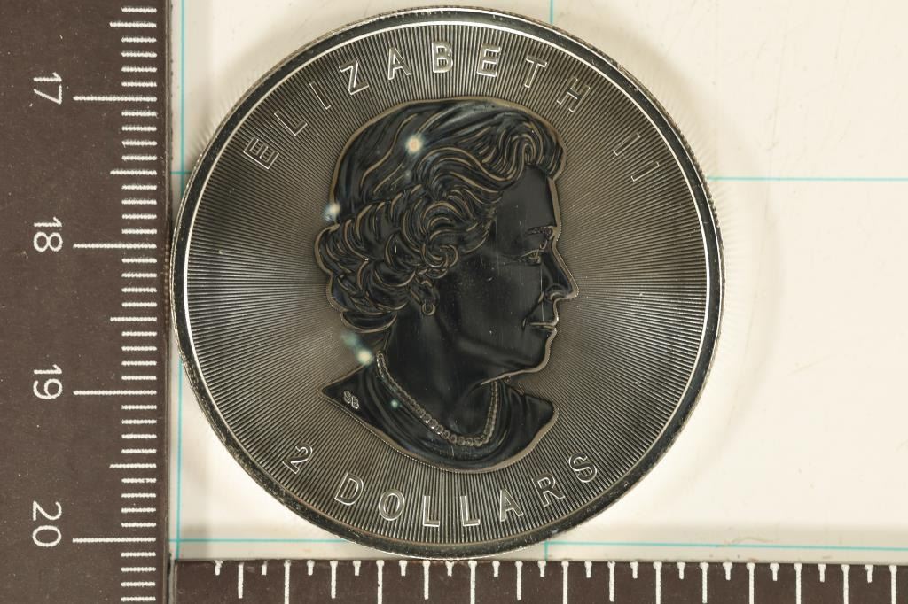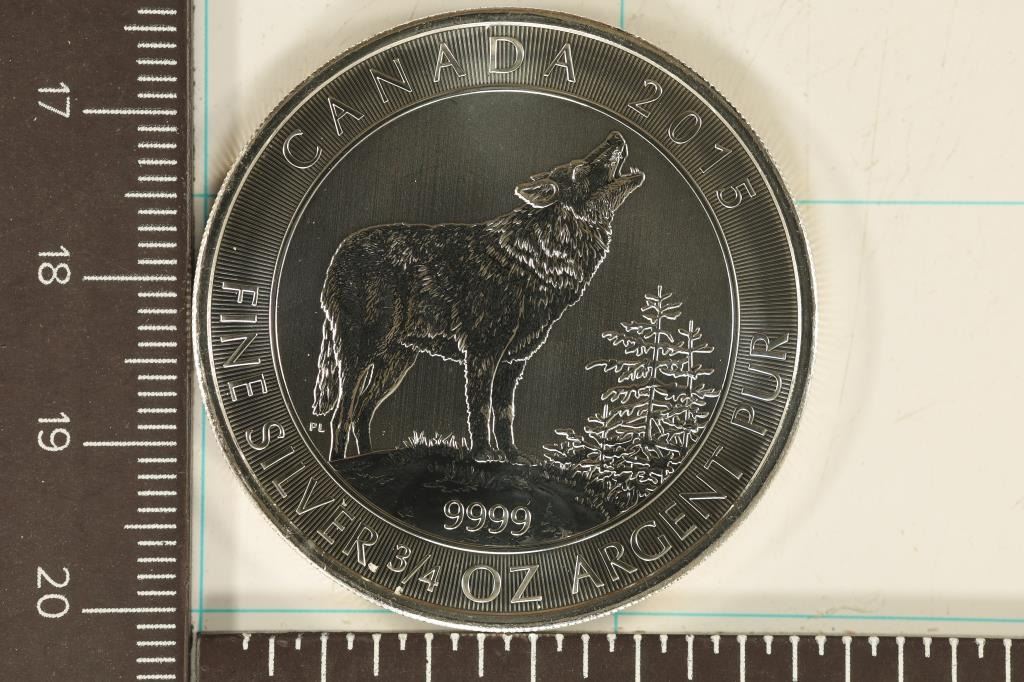 GREY WOLF ROUND IN HARD PLASTIC CAPSULE. SOME TONING SPOTS ON REVERSE