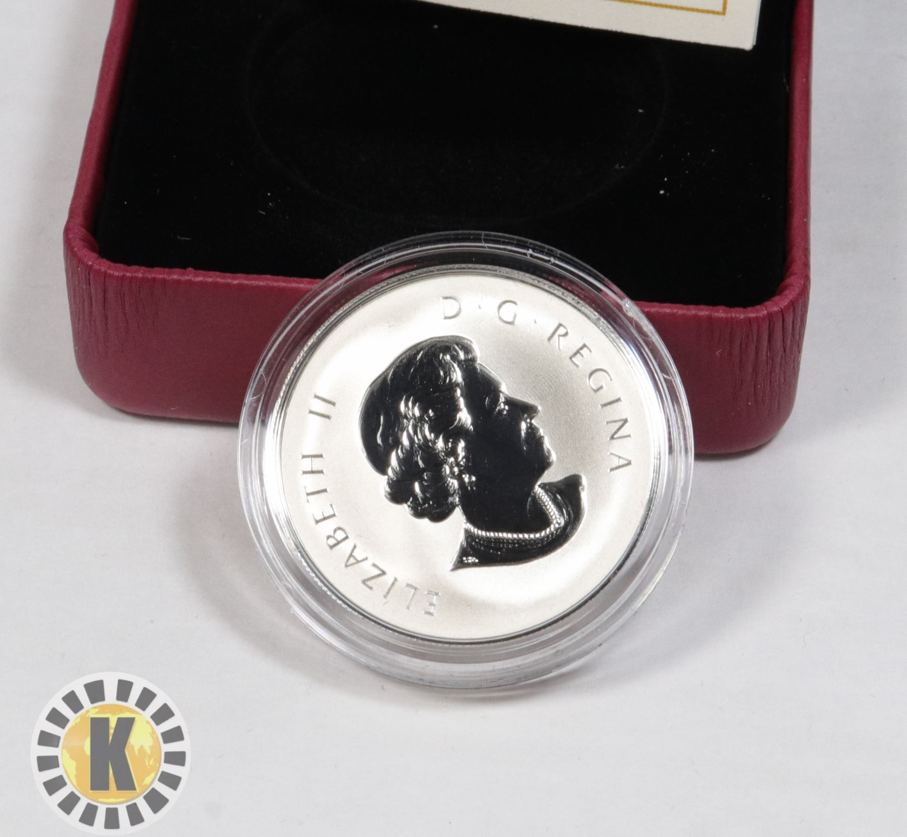 COLORED COIN. (60,000 ONLY MINTED). FINISH: REVERSE PROOF. SERIALIZED , COMES WITH CERTIFICATE OF AUTHENTICITY, MAROON CLAMSHELL WITH DECORATIVE BOX. 1 COIN IN SERIES OF 7***ITEM(S) LOCATED IN LETHBRIDGE ALBERTA, SMALL ITEMS ONLY ARE AVAILABLE FOR FREE TRANSPORT TO EDMONTON OFFICE (READ AUCTION DETAILS FOR MORE INFORMATION)