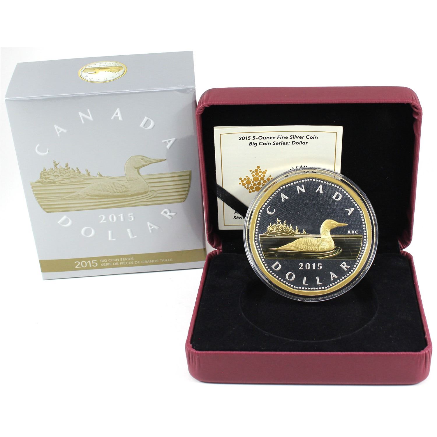 2015 Canada $1 Gold Plated Big Coin 5oz Fine Silver (#1) Tax Exempt. LOW MINTAGE 0046/1500! Minor imperfections.