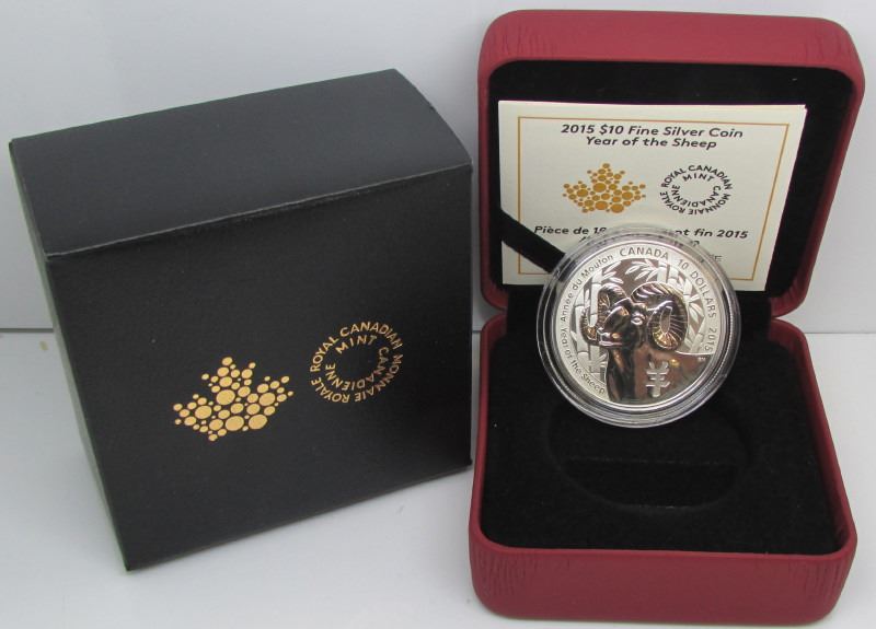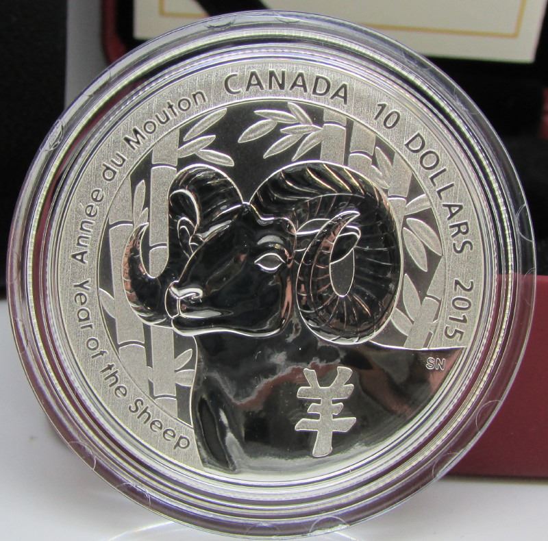2015 Canadian Fine Silver $10 Coin By RCM - Year Of The Sheep - 22,888 Mintage - 15.87 Grams