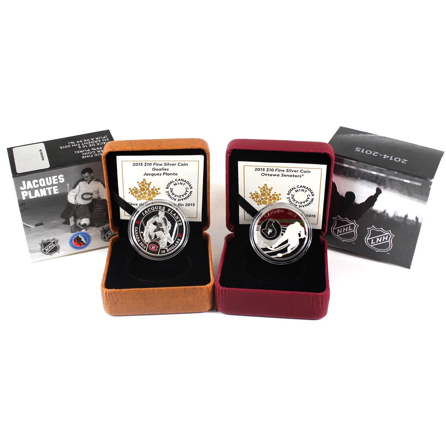 2015 Canada $10 Goalies: Jacques Plante & 2015 $10 Ottawa Senators Fine Silver Coins. 2pcs (TAX Exempt)