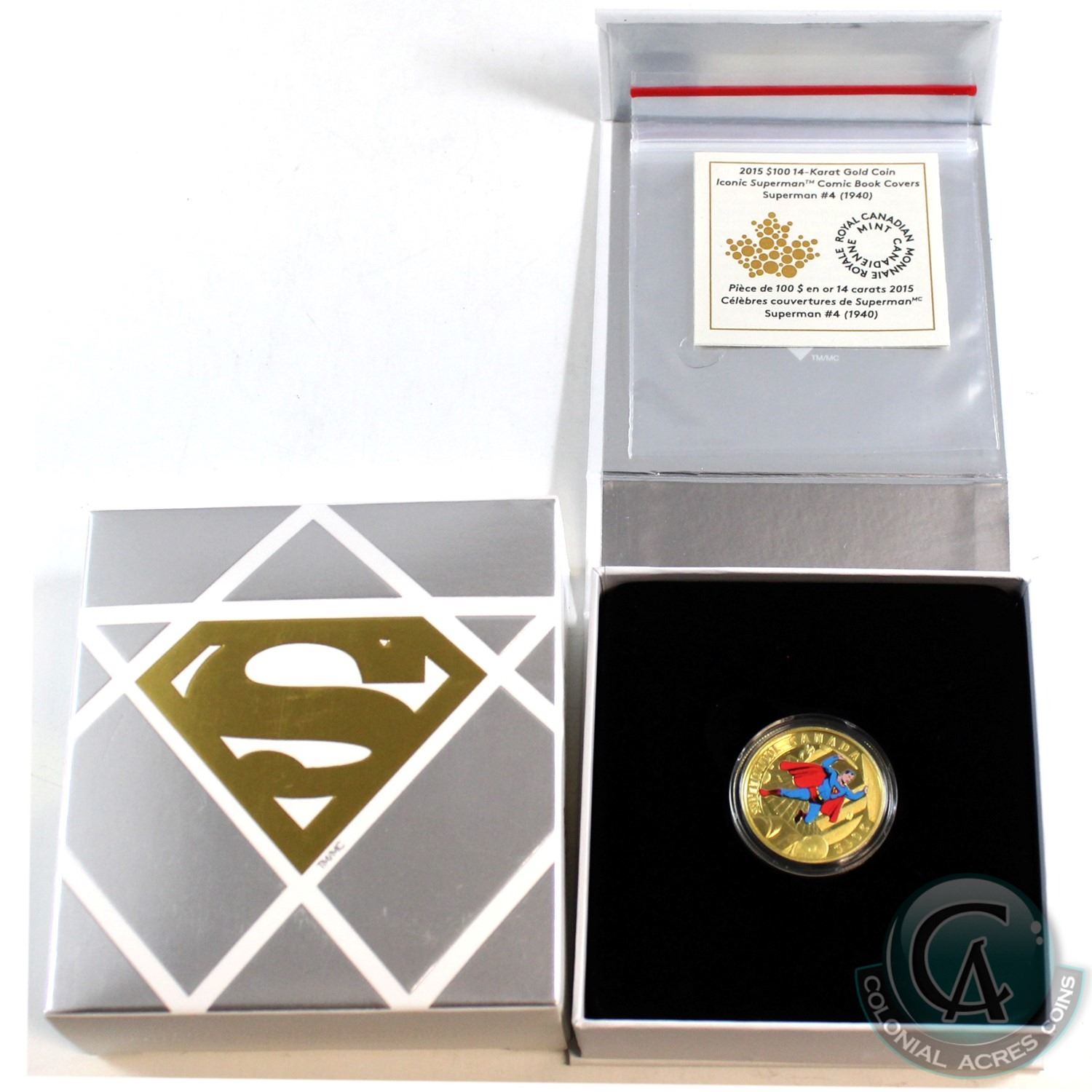 2015 Canada $100 Iconic Superman Comic Book Covers: Superman #4 14K Gold Coin.