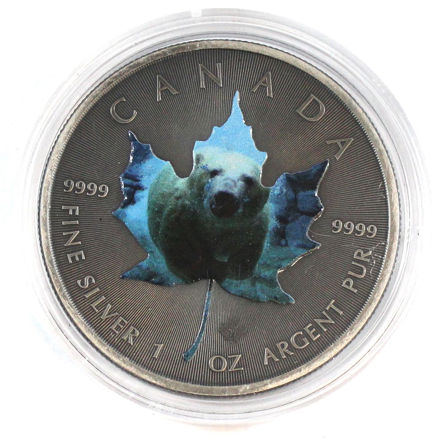 2015 Canada 1oz Silver Maple with Antique Finnish and Coloured Polar Bear Theme (Tax Exempt).