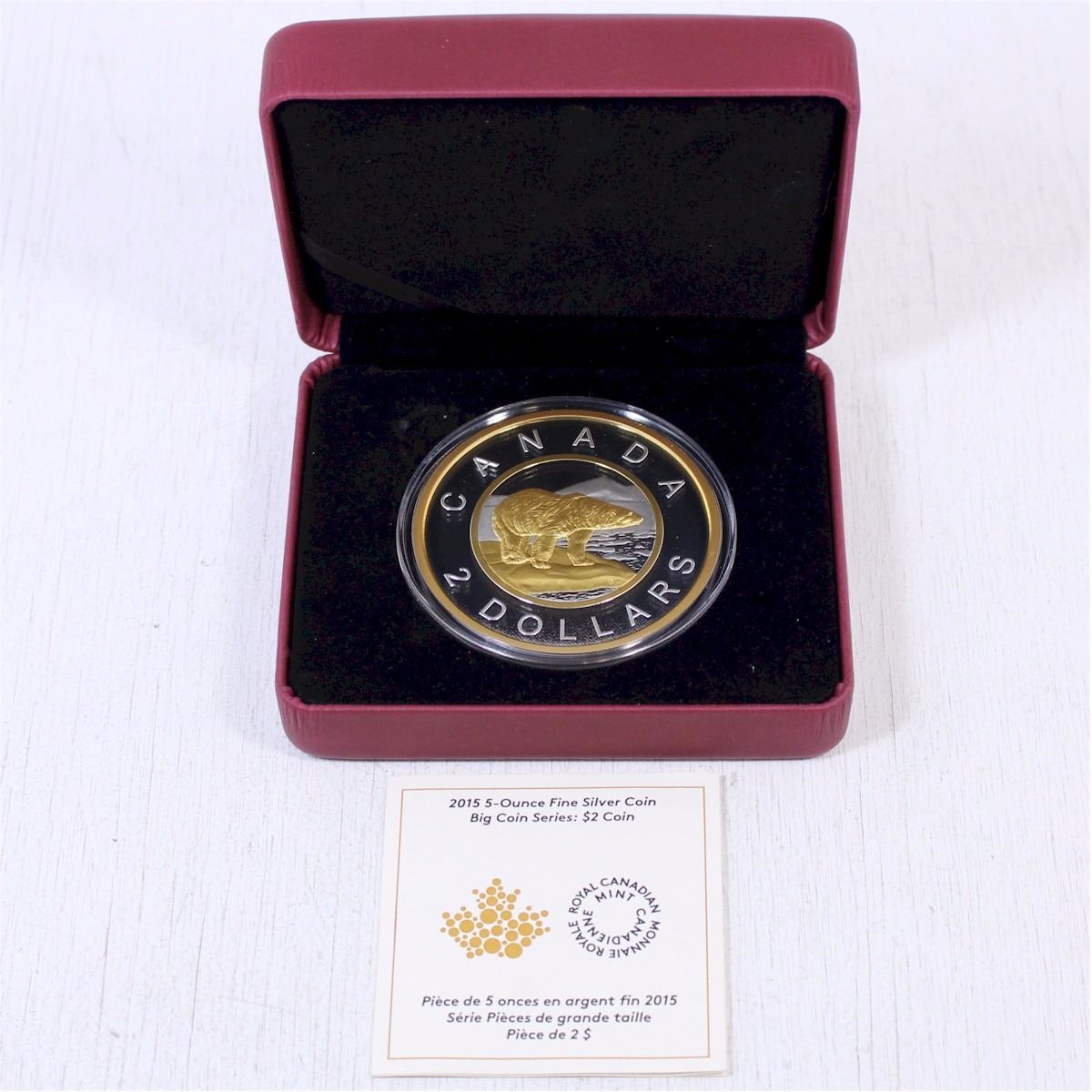 2015 Canada $2 5 oz. Big Coin Series Two Dollar Fine Silver Coin in original Mint packaging (missing outer cardboard sleeve). TAX Exempt