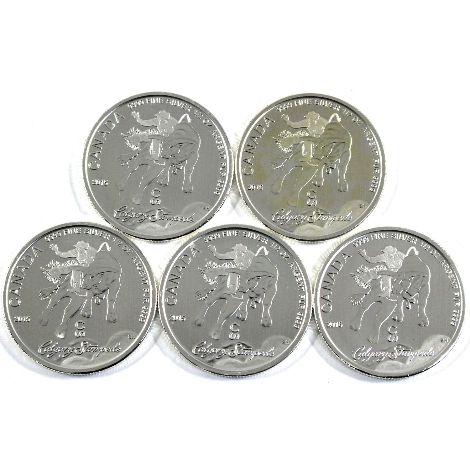 2015 Canada $2 Calgary Stampede 1/2oz .9999 Fine Silver Coins (May contain light toning spots). 5pcs (TAX Exempt)