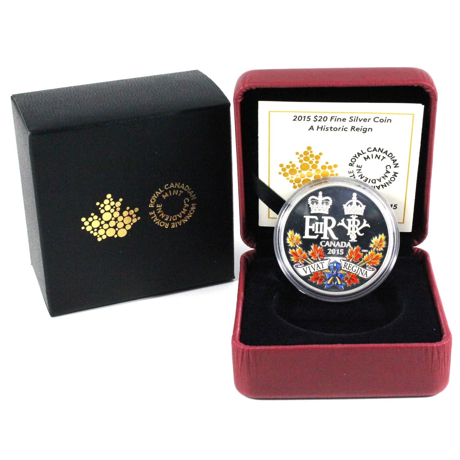 2015 Canada $20 A Historic Reign Fine Silver Coin (Capsule lightly scratched). TAX Exempt