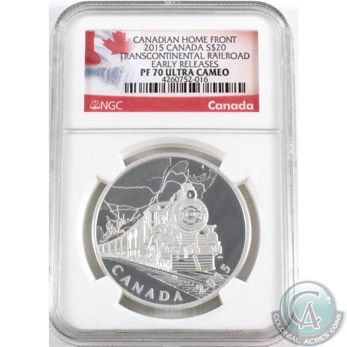 2015 Canada $20 Canada Home front Transcontinental Railroad Fine Silver NGC Certified PF-70; Ultra cameo (Tax Exempt)