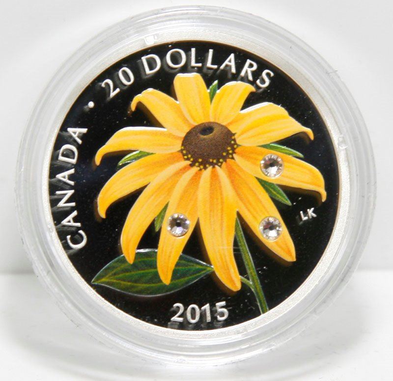 2015 Canadian $20 Fine Silver Coin - Black-Eyed Susan with Crystal Dew Drops