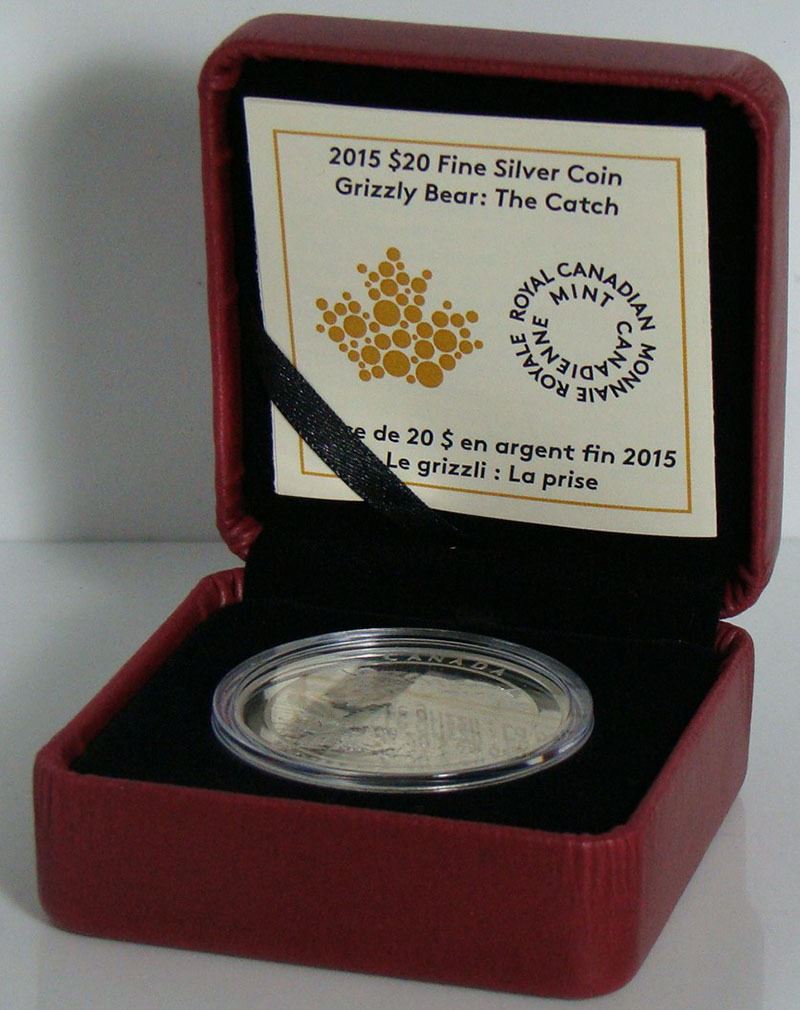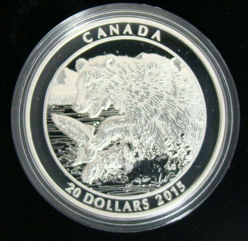 2015 Canada $20 Fine Silver Coin Grizzly Bear: The Catch NIB w/COA NO TAX