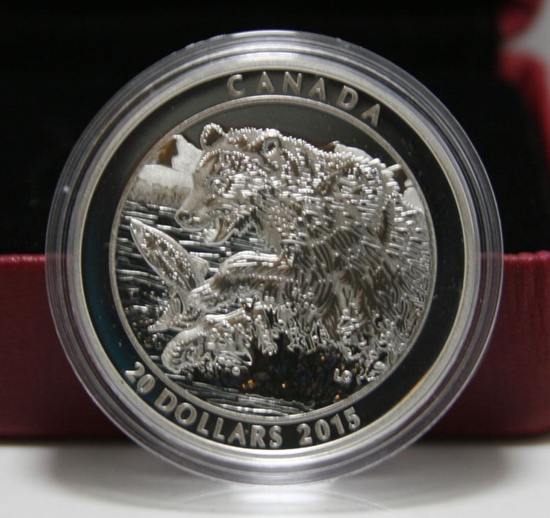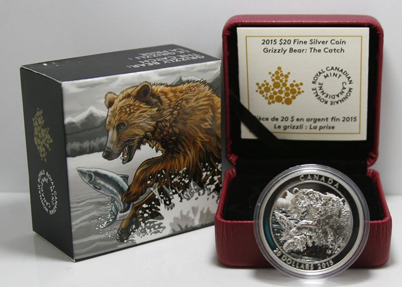 2015 Canadian $20 Fine Silver Coin - Grizzly Bear: The Catch