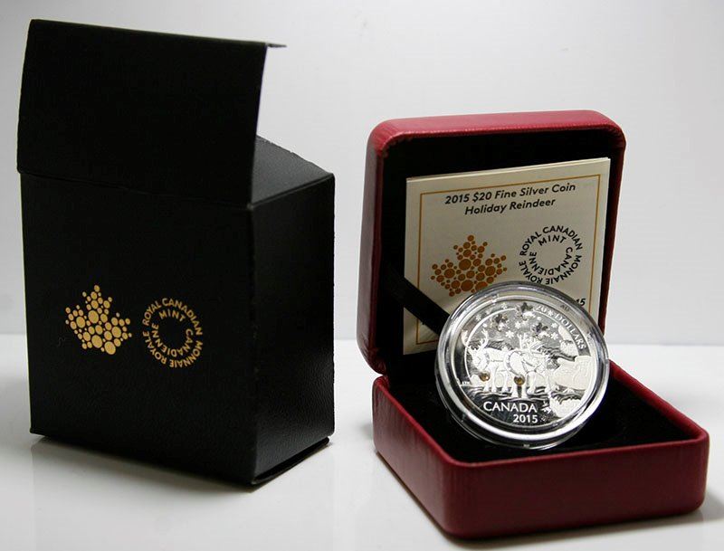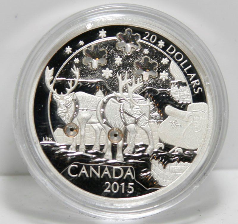2015 Canadian $20 Fine Silver Coin - Holiday Reindeer - With Swarovski Elements