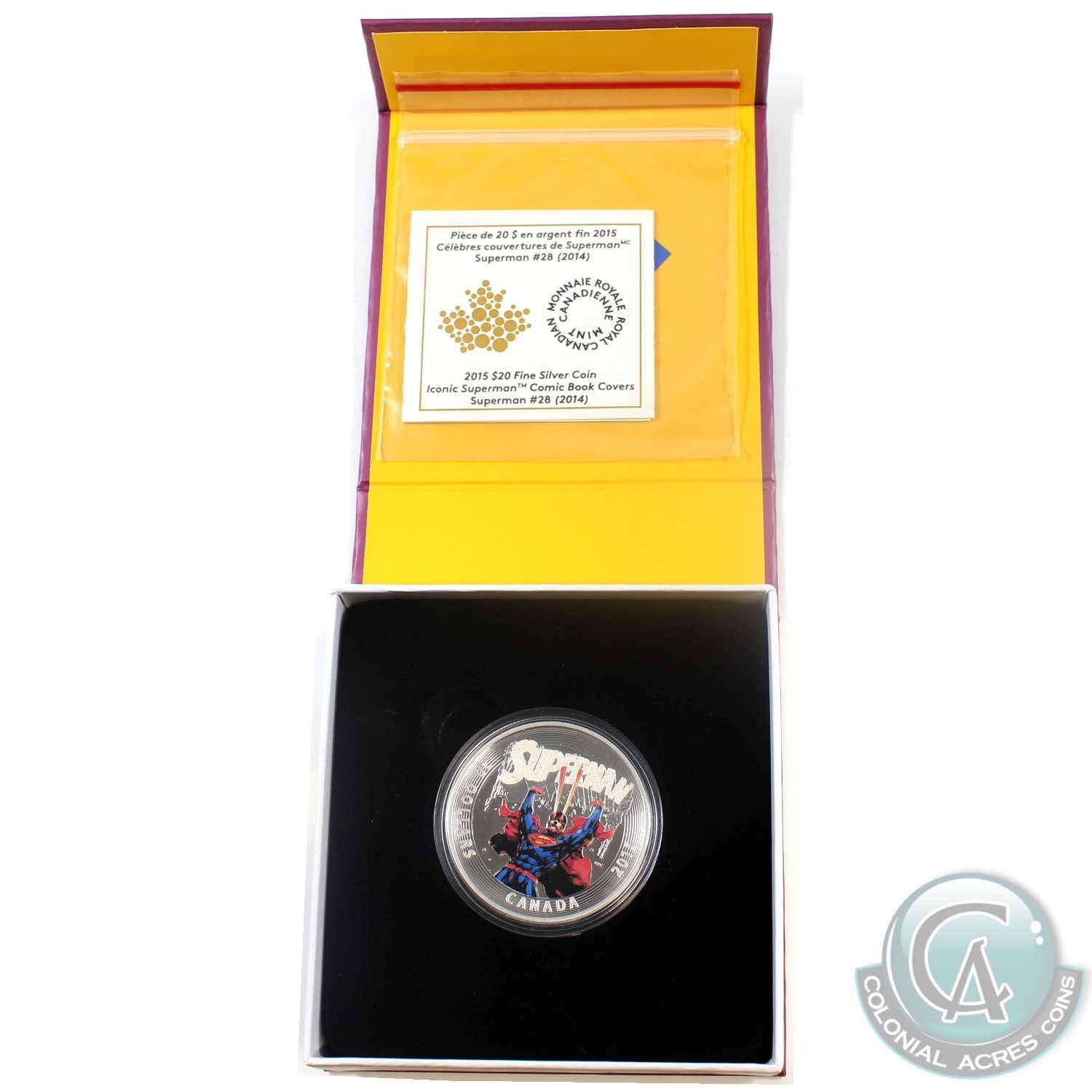 2015 Canada $20 Iconic Superman: Superman #28 (2014) Fine Silver Coin. (TAX Exempt)