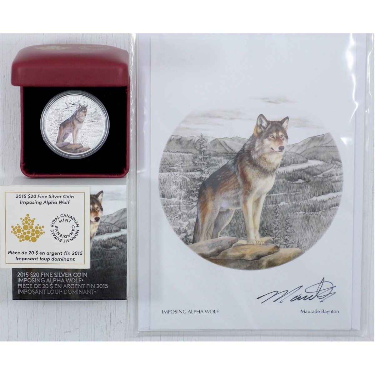 2015 Canada $20 Imposing Alpha Wolf Fine Silver Coin (TAX Exempt). Buyers Premium will be added on all items as per our terms of sale. We accept Paypal, Credit Card, E-Transfer Payments, Cheque or Money Orders (there is an additional 3% fee for using Paypal or Credit Card). All invoices will be emailed immediately following the auction, please contact us if you would like to pay by credit card or receive a new revised lower total for mailing in payment or sending an e-transfer (3% discount). All Items Are Sold "AS IS", no returns
