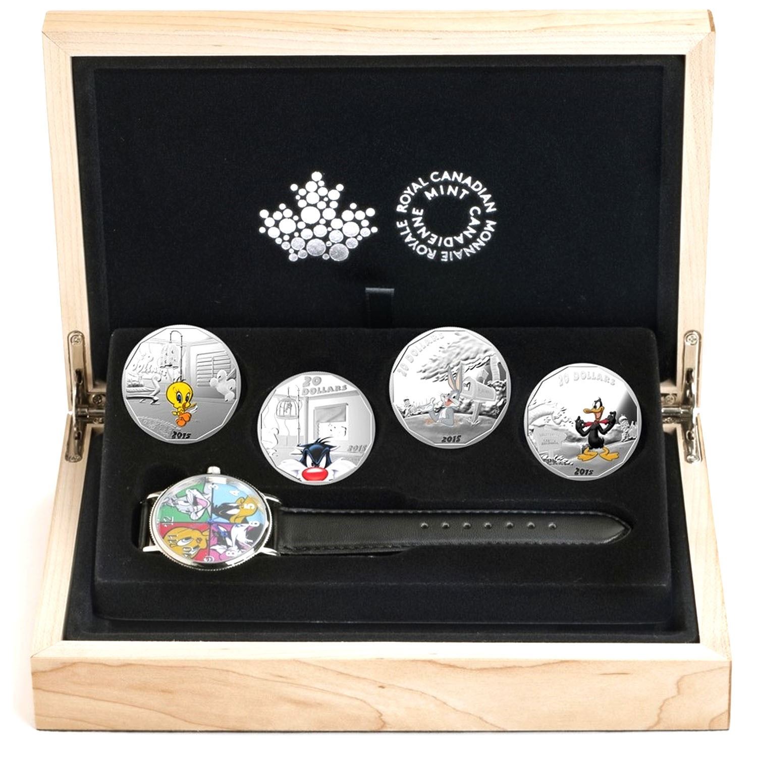 2015 Canada $20 Looney Tunes Classic Scenes 4-coin Fine Silver Set with Watch (TAX Exempt).
