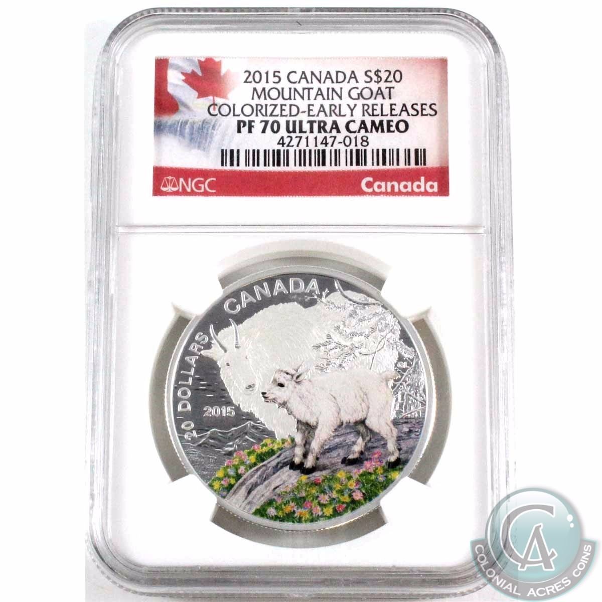 2015 Canada $20 Mountain Goat colourized Fine Silver Coins NGC Certified PF-70 Ultra Cameo (Tax Exempt)