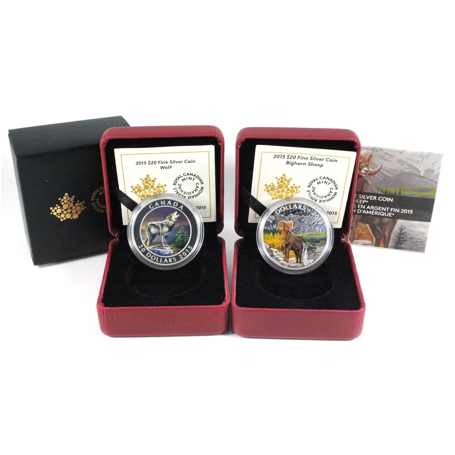 2015 Canada $20 Wolf & 2015 $20 Bighorn Sheep Fine Silver Coins. 2pcs (TAX Exempt)