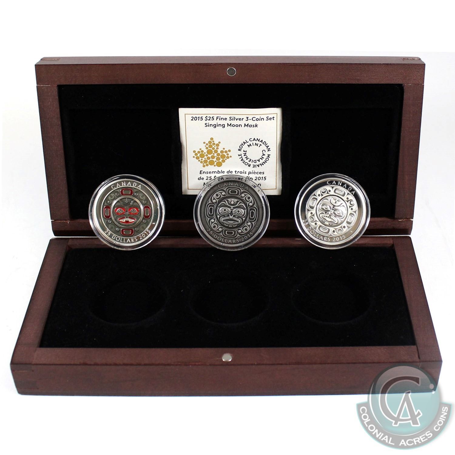 2015 Canada $25 Singing Moon Mask Fine Silver 3-coin Set (Tax Exempt) Please note outer box contains wear.
