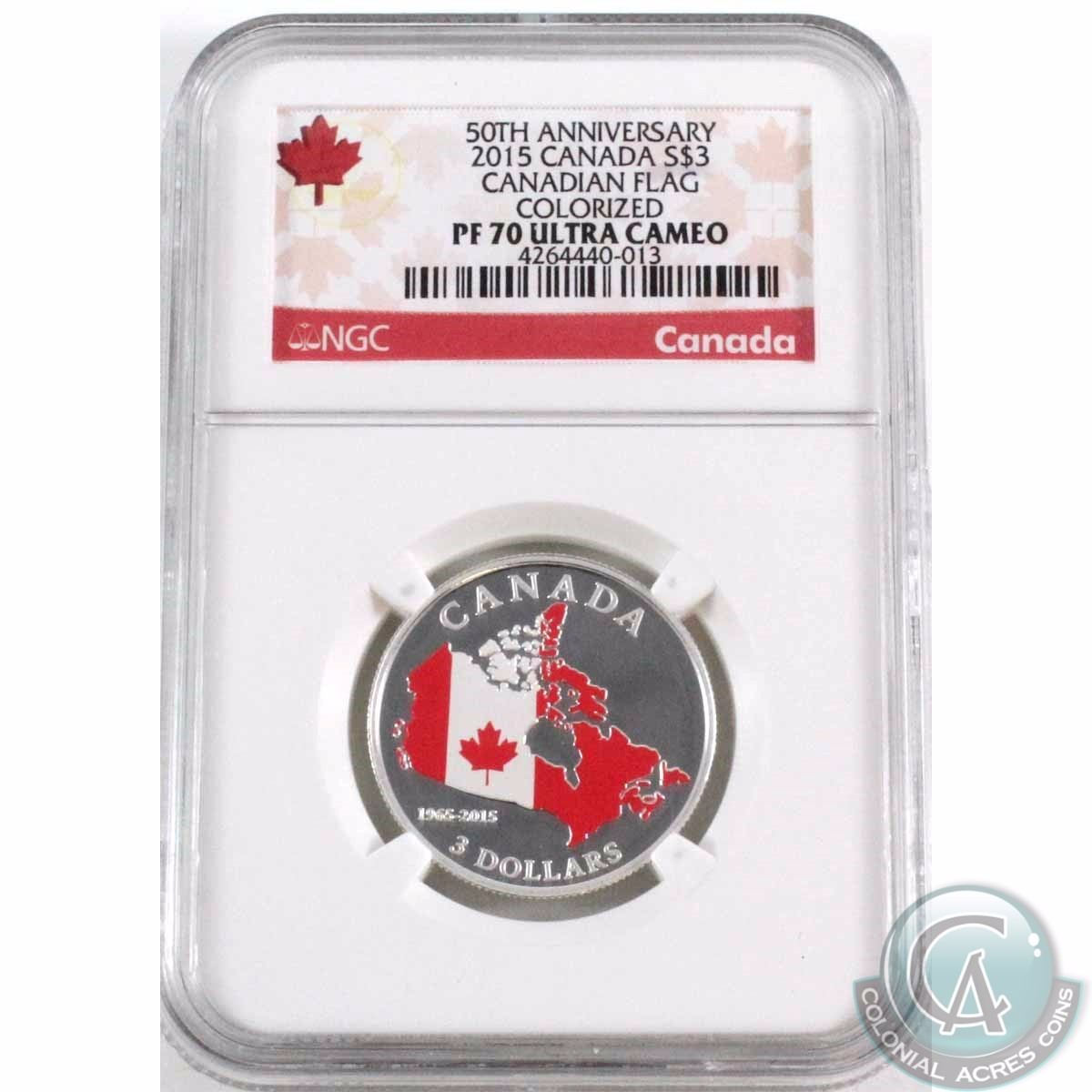 2015 Canada $3 50th Anniversary Colourized Canadian Flag NGC Certified PF-70 Ultra Cameo