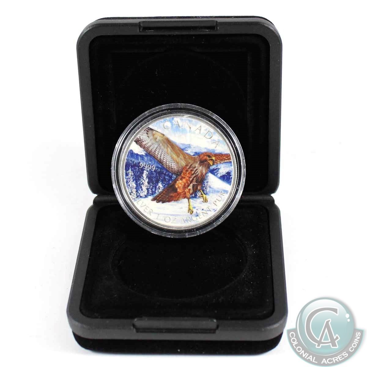2015 Canada $5 Birds of Prey - Red-tailed Hawk Coloured Fine Silver Coin in Black RCM Display Box (capsule lightly scuffed) TAX Exempt