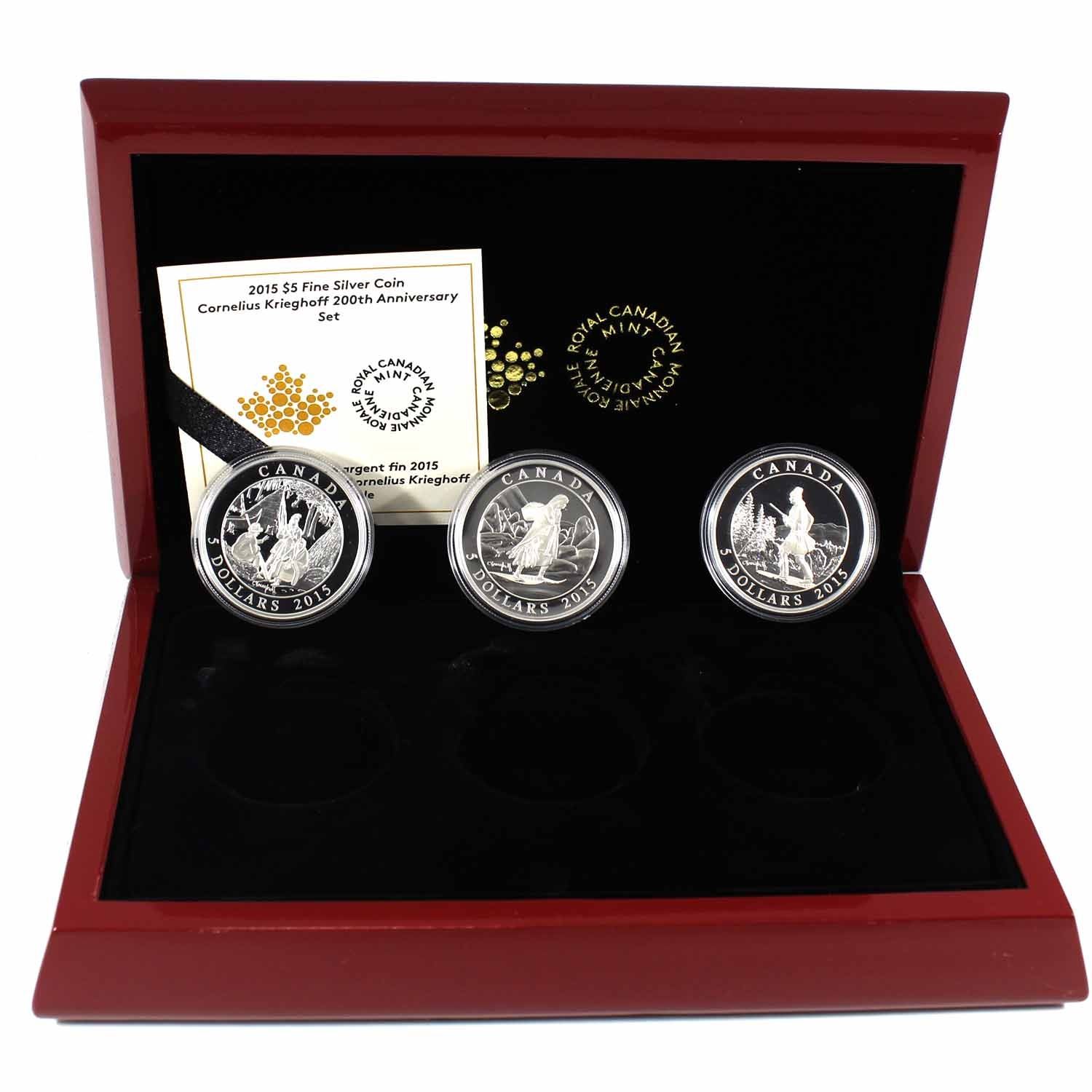 2015 Canada $5 Cornelius Krieghoff 200th Anniversary Fine Silver 3-coin Set (TAX Exempt)