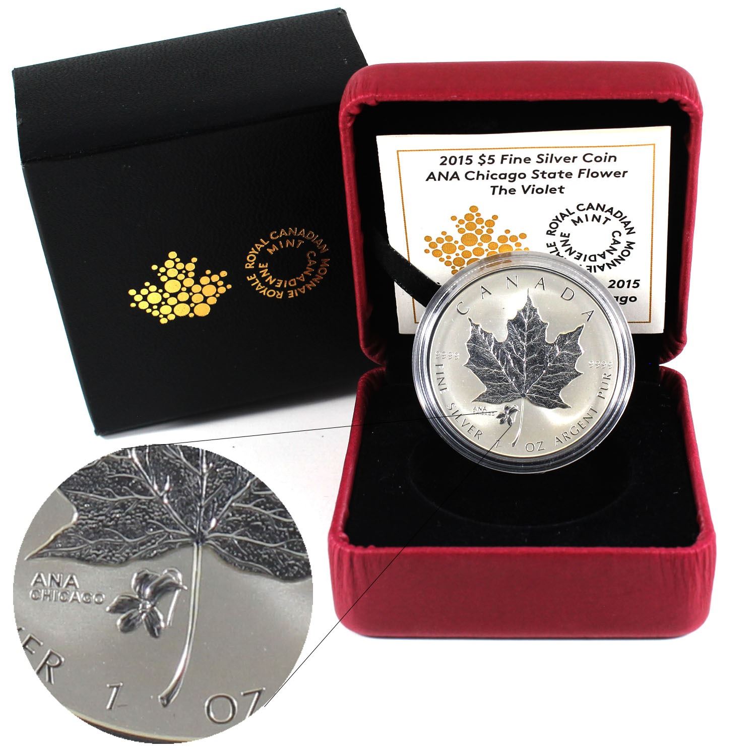 2015 Canada $5 Violet Privy - ANA Chicago State Flower Fine Silver Coin (TAX Exempt).