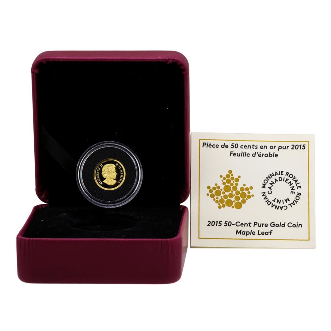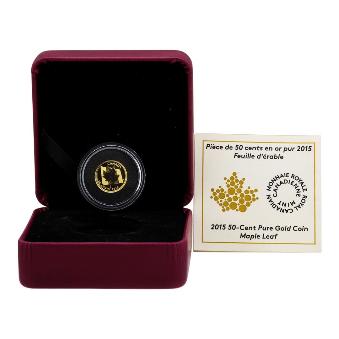 One 2015 Canada 50 Cent 1/25 oz. Gold Maple Leaf Coin.