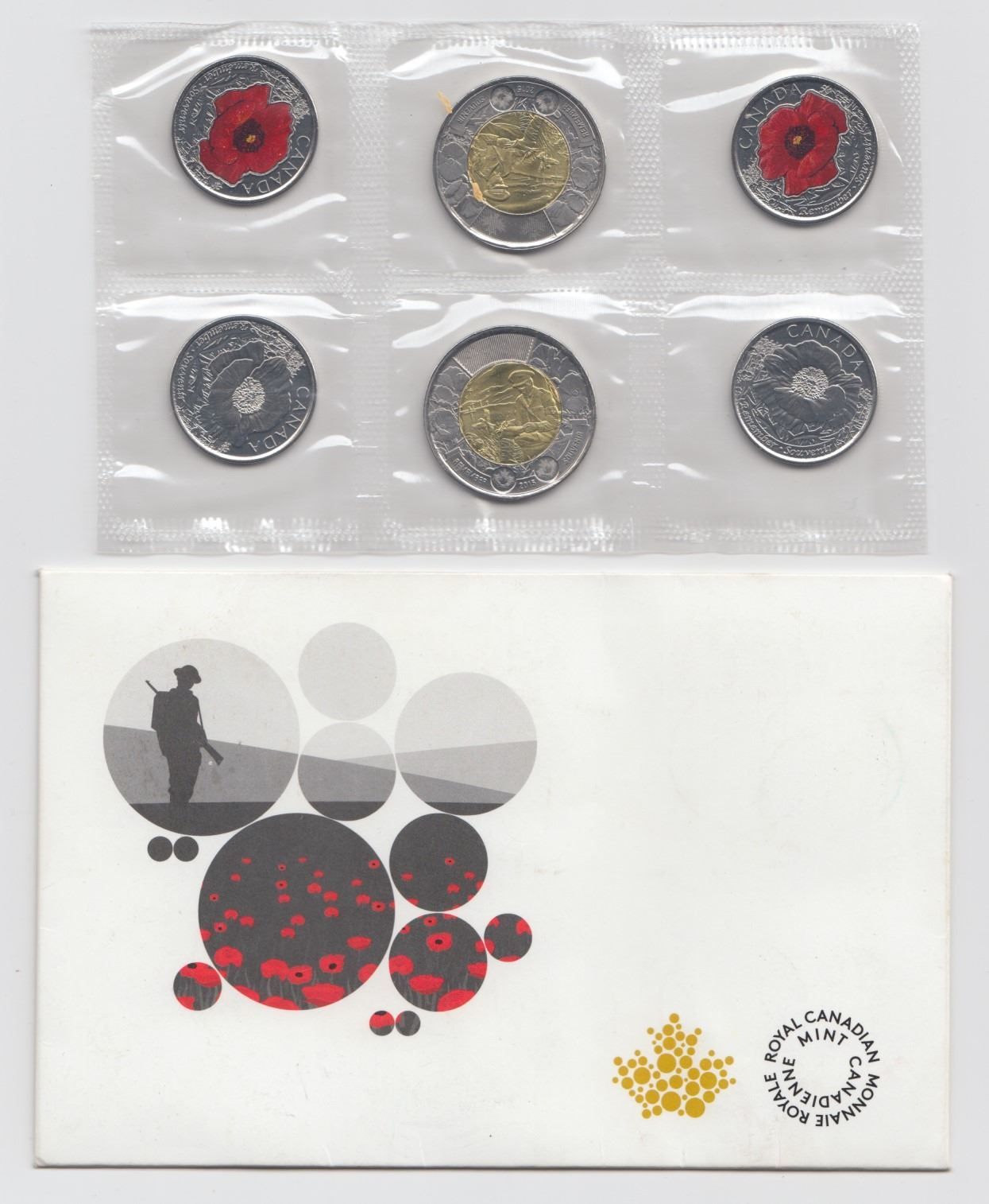 Includes sealed uncirculated versions of the commemorative Poppy coins and Flanders Field toonies.