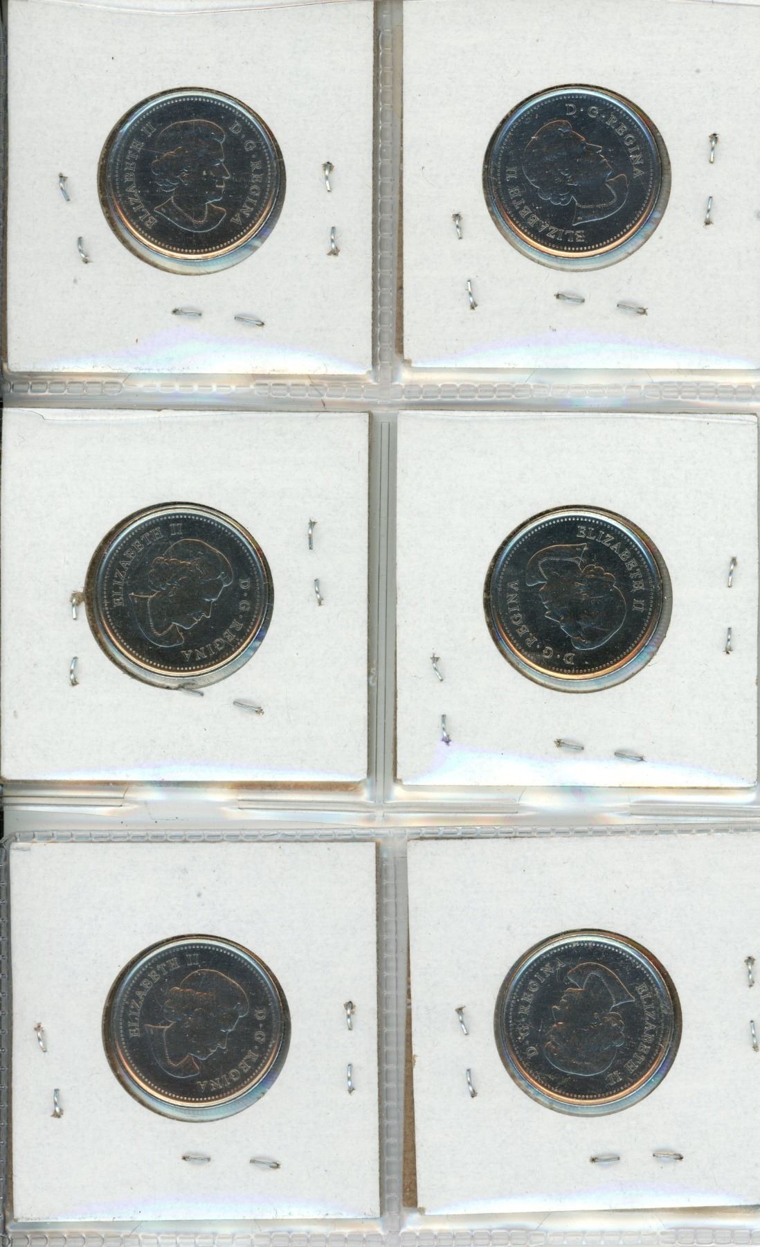 2015 Canadian 25 Cents, (2) Colour Flag and (4) No Colour Flag.
