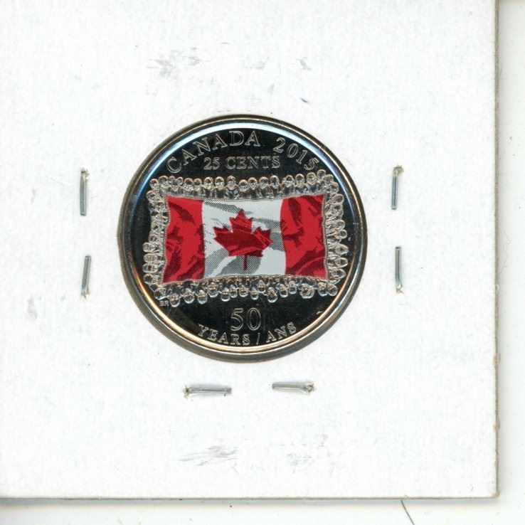 2015 Canadian Twenty-Five Cent - Fiftieth Anniversary Flag - Colored.
