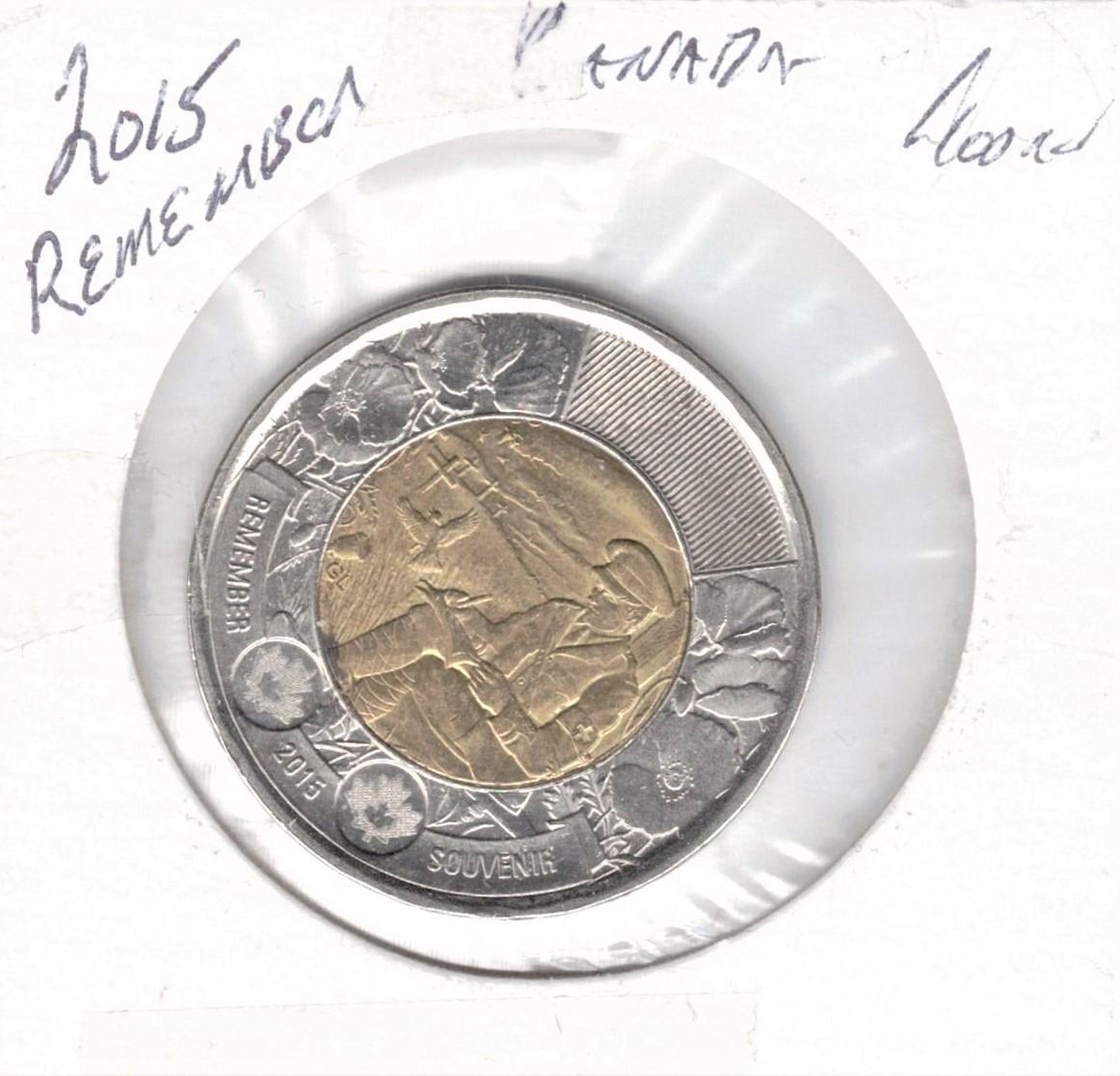 2015 Canadian Two Dollar Coin - Rememberance. this Toonie is Remember : 5,000,000 very rare and hard to obtain due to the very limited number minted