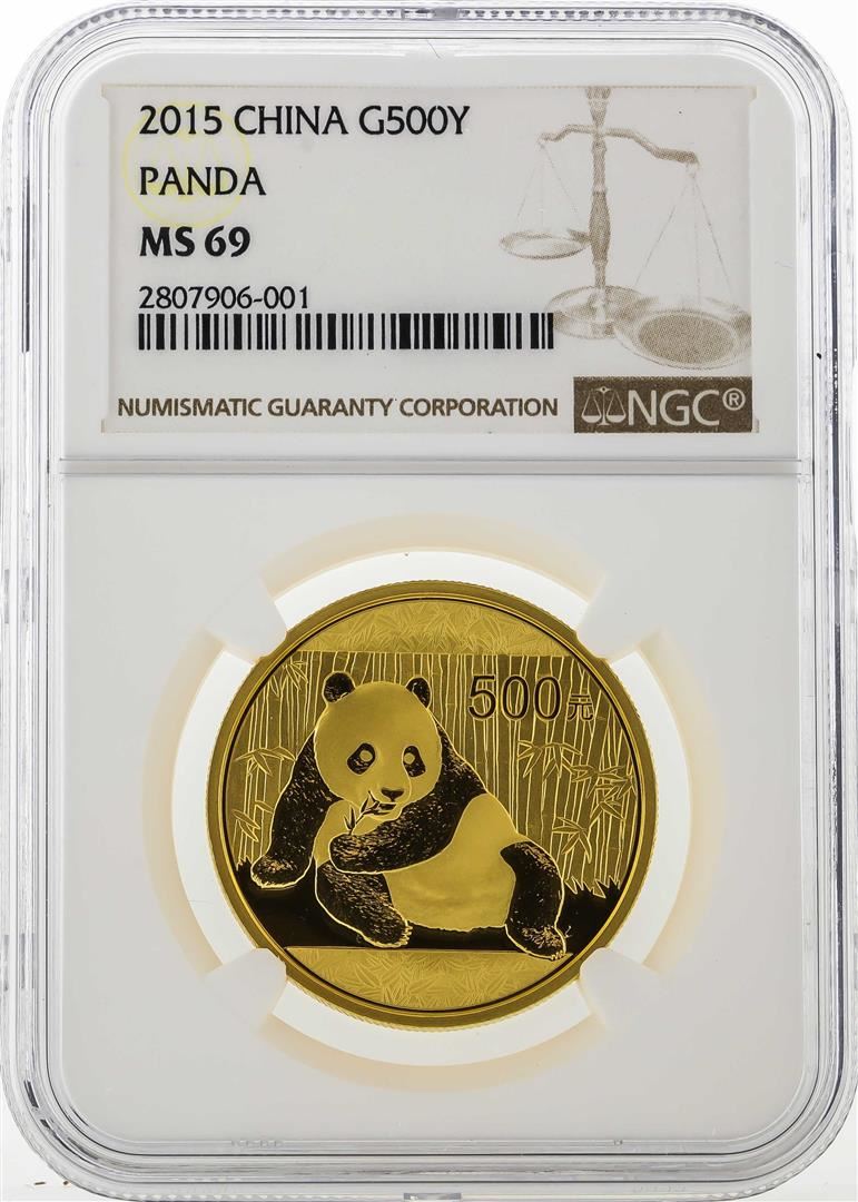 One 2015 China 500 Yuan Gold Panda Coin NGC MS69. NGC Certified.
