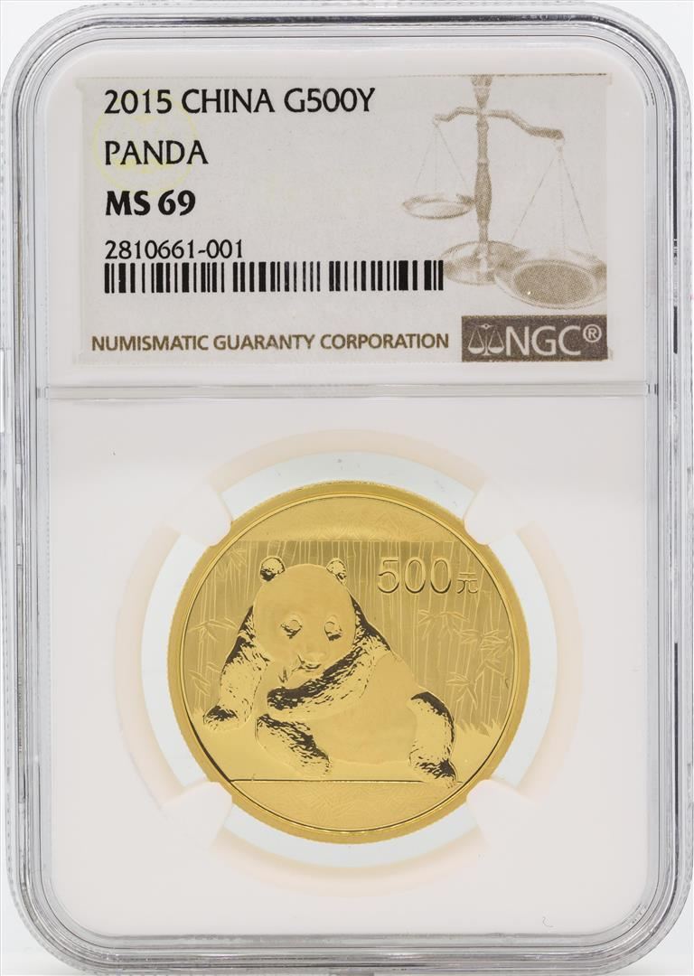 One 2015 China 500 Yuan Panda Gold Coin NGC MS69. NGC Certified.