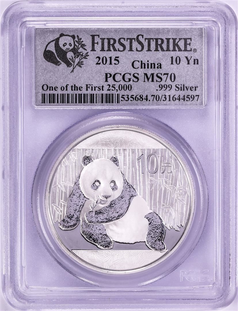 One 2015 China Panda Silver Coin PCGS MS70 First Strike. PCGS Graded.