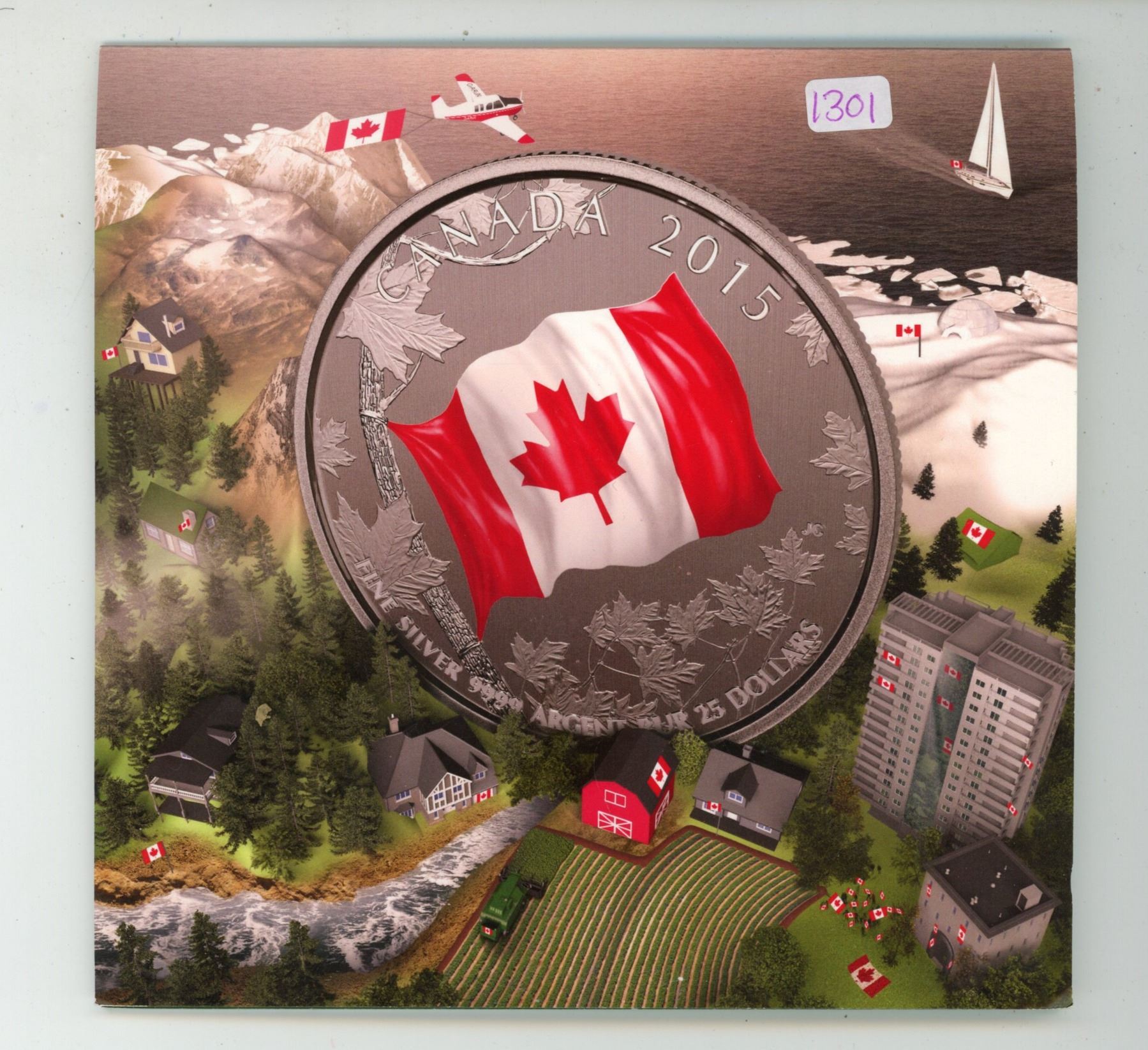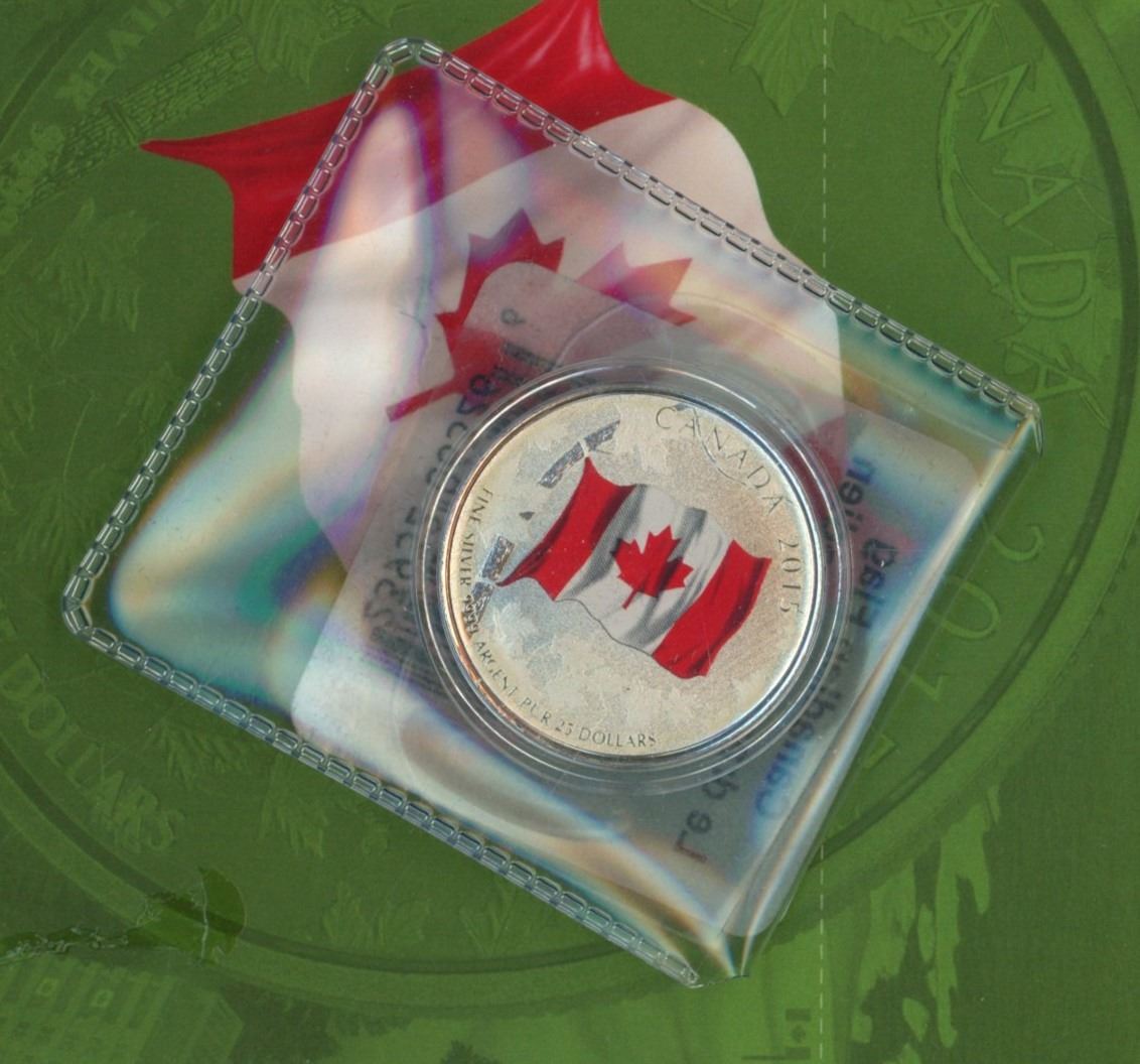 2015 "Colored Flag" Canadian fine silver 25 dollar coin, in folder