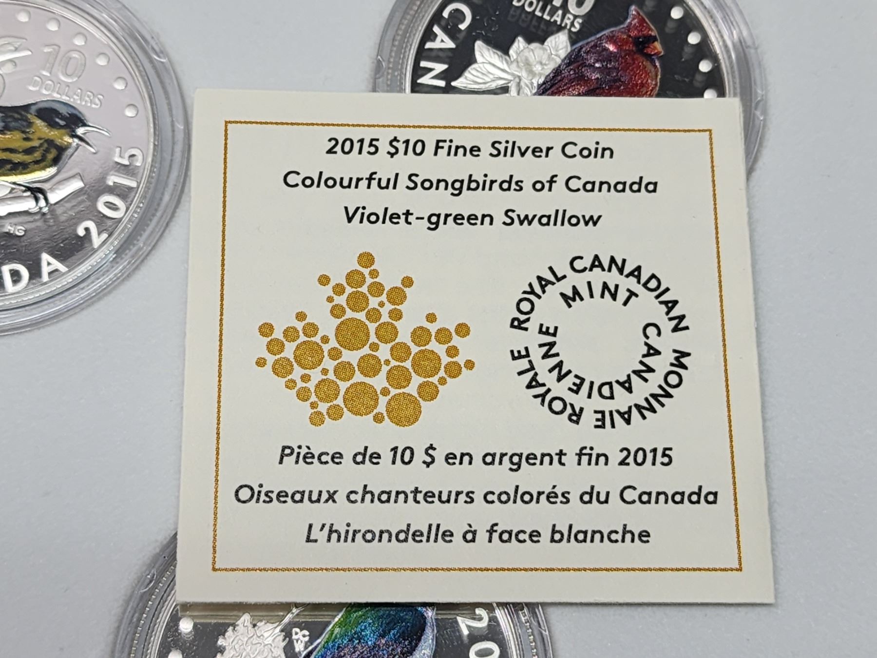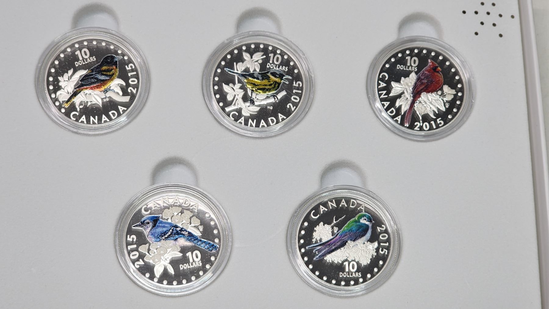 2015 "Colourful songbirds of Canada" 5pc 10 dollar, fine silver coin set - in box